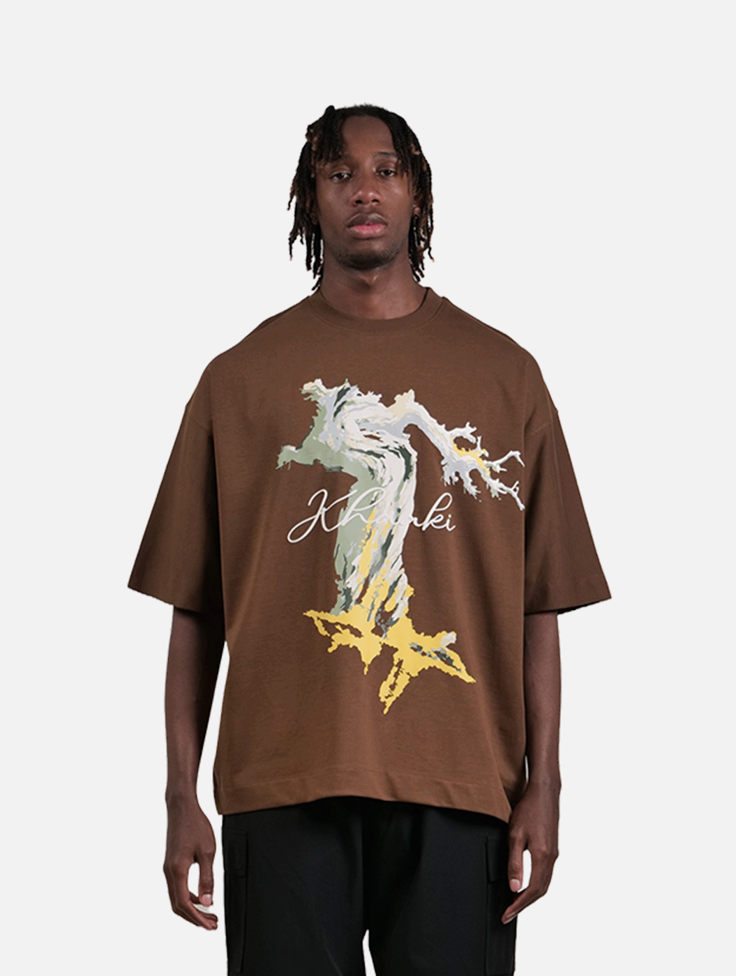 The highlight of the design lies in its bold, vibrant puff prints, made to last and stand out. Whether you’re pairing it with baggy pants or tailored trousers, this versatile piece adds a touch of personality to brunches, dates, or any laid-back outing. Designed as a unisex staple, "Olive Tree" blends functionality with a luxe aesthetic, making it an essential for anyone who loves fashion with an edge.