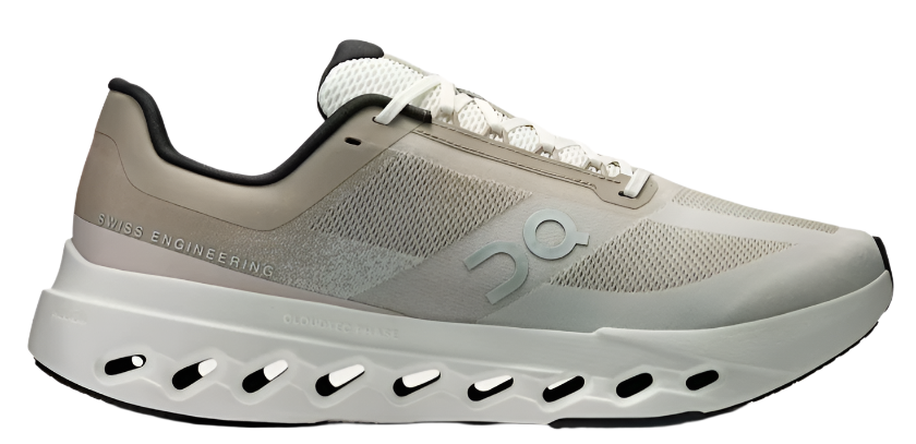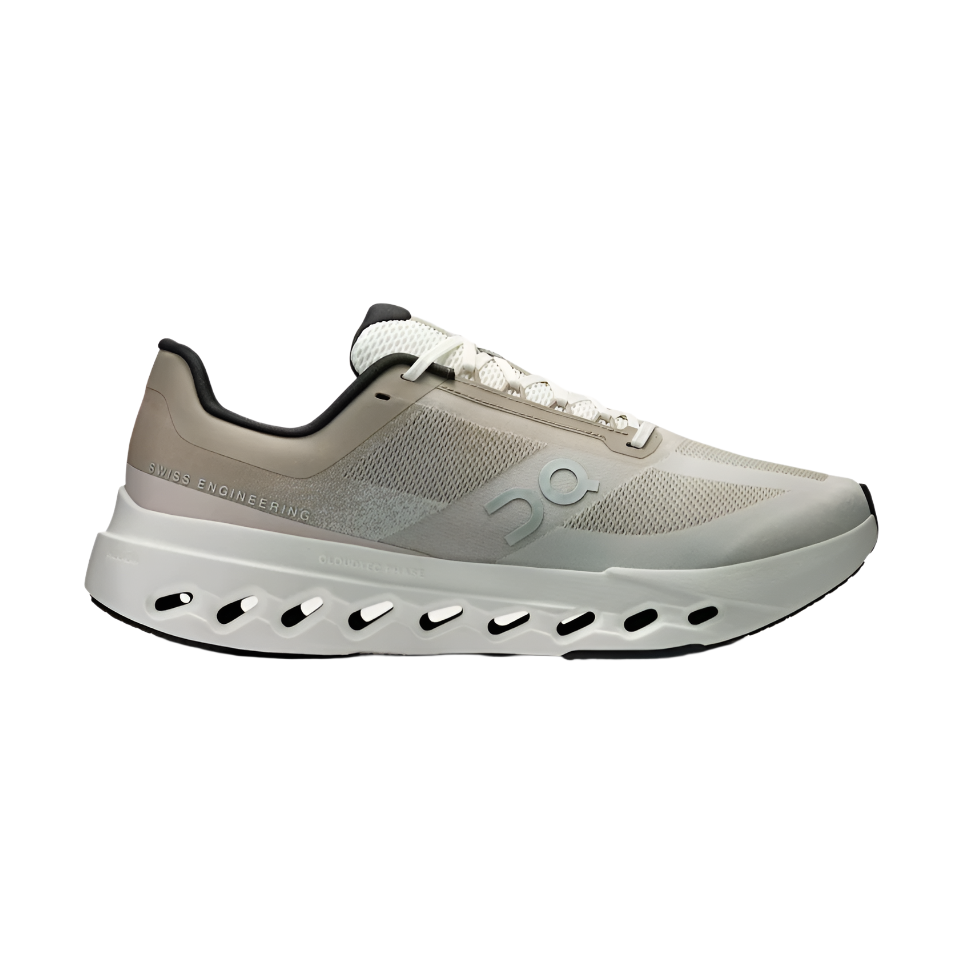 The On Running Cloudsurfer Next shoe in "Fog | Ivory" combines style and performance. Featuring the latest technology, this shoe provides superior cushioning and energy return for a comfortable and efficient run. Upgrade your running experience with the Cloudsurfer Next.