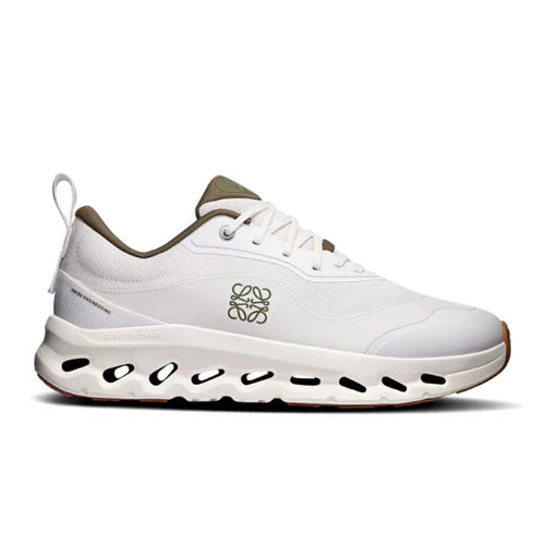Experience comfort and style with the On Running Cloudtilt 2 LOEWE White Khaki. Featuring an innovative cloud cushioning system, these shoes provide superior support and a lightweight feel. The sleek LOEWE design adds a touch of luxury to your workout or everyday wear. Step into the future of footwear.