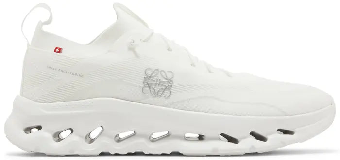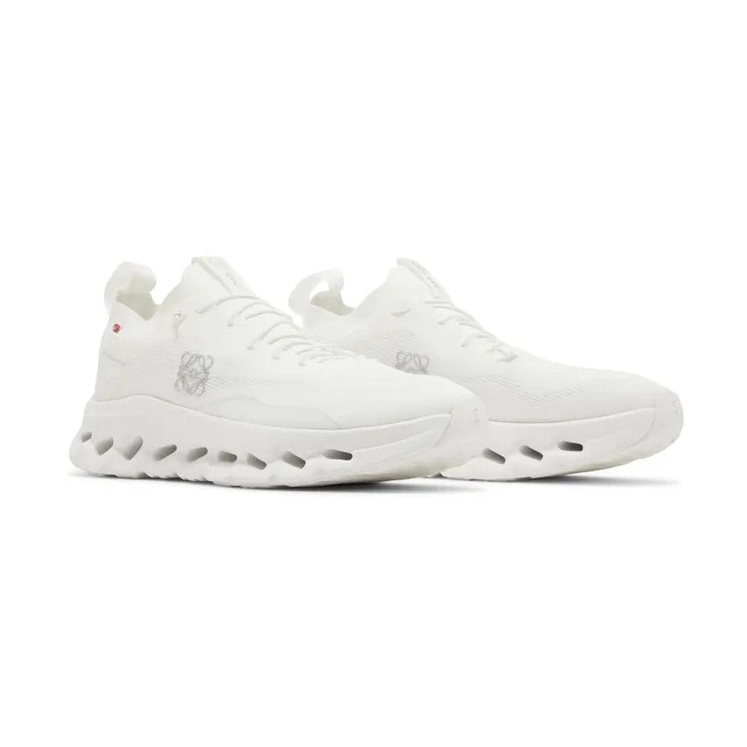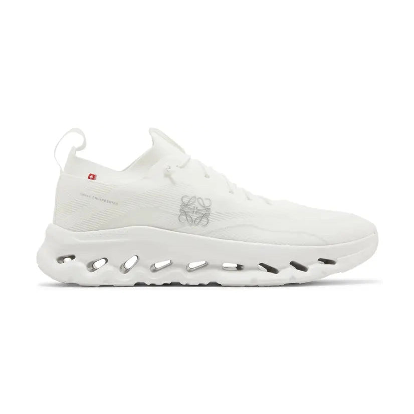 The On Running Cloudtilt LOEWE All White is a top-of-the-line shoe designed for optimal performance and style. With its signature Cloudtilt technology, these shoes provide superior cushioning and support for your feet. The sleek all white design adds a touch of sophistication to your workout or everyday wear. Experience the perfect blend of function and fashion with On Running.