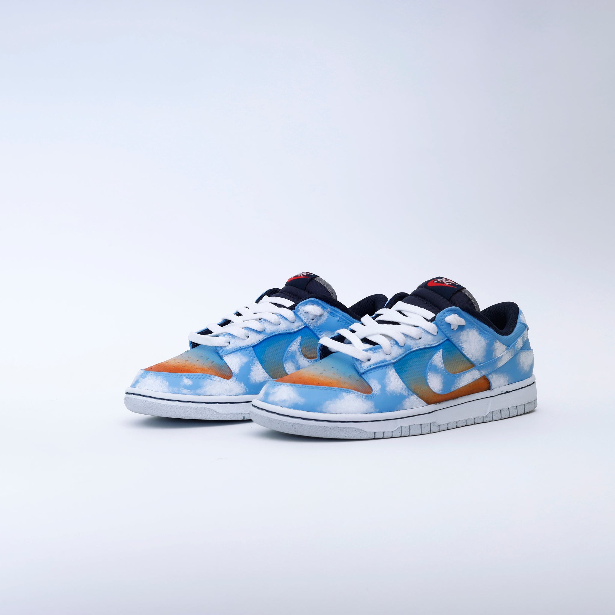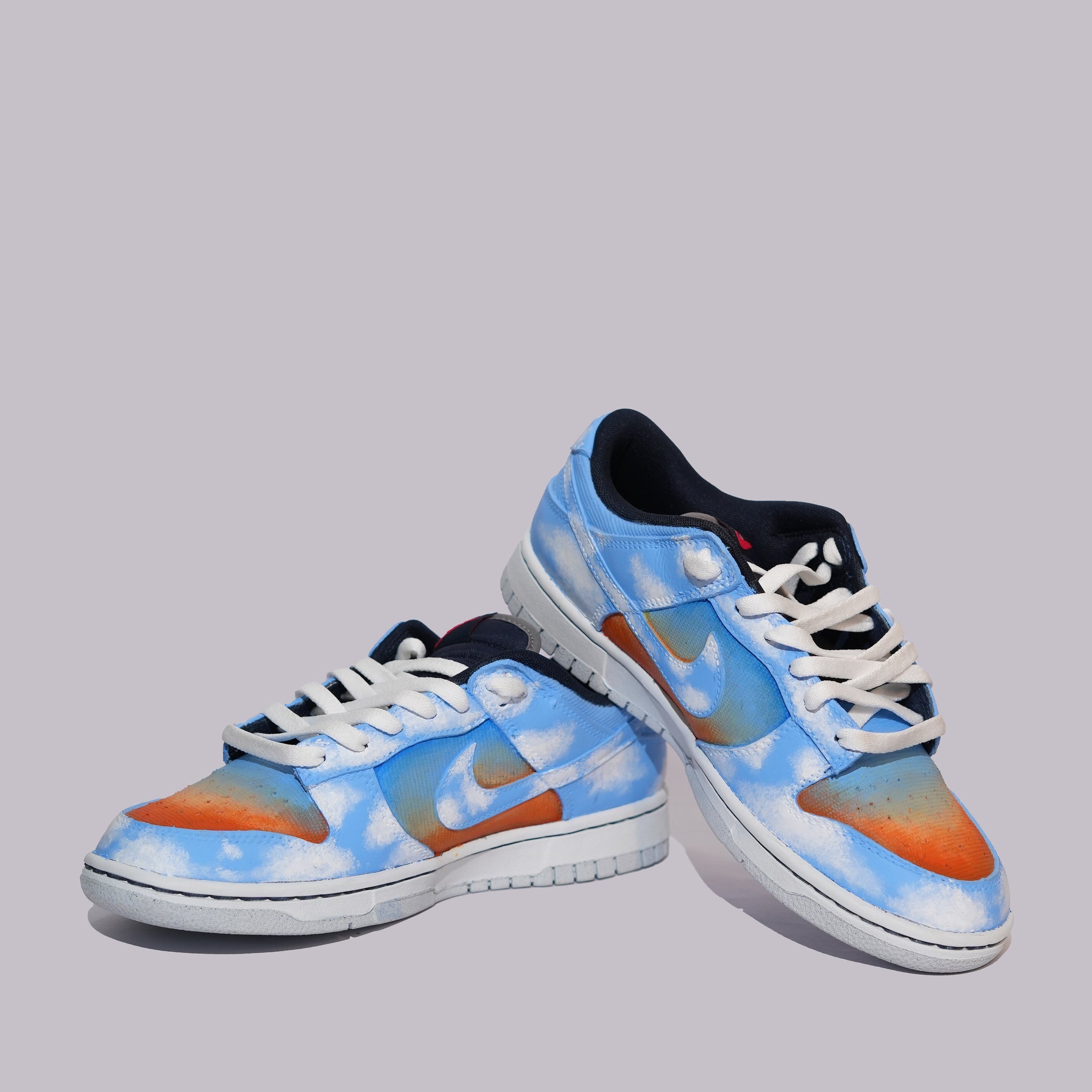 Envoke your sunset feels with our Nike Sunset Dunks. White clouds on University Blue paint paired with an evening ombre is 100% guaranteed to make you chill like that.