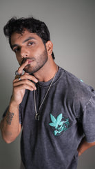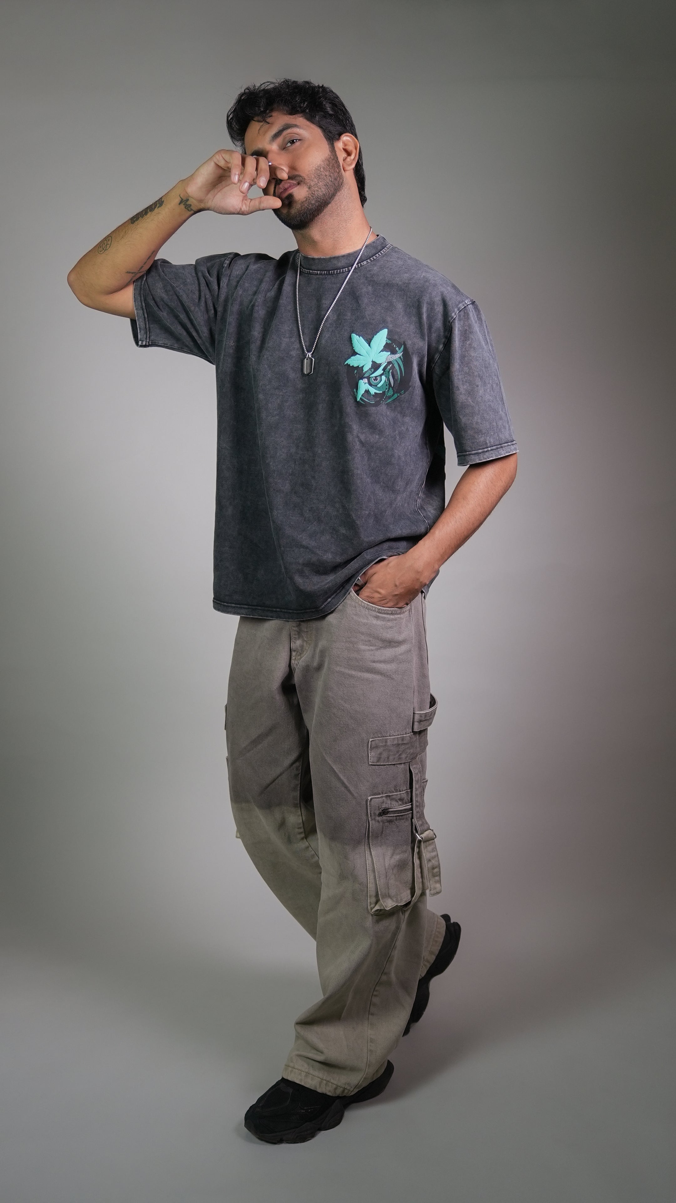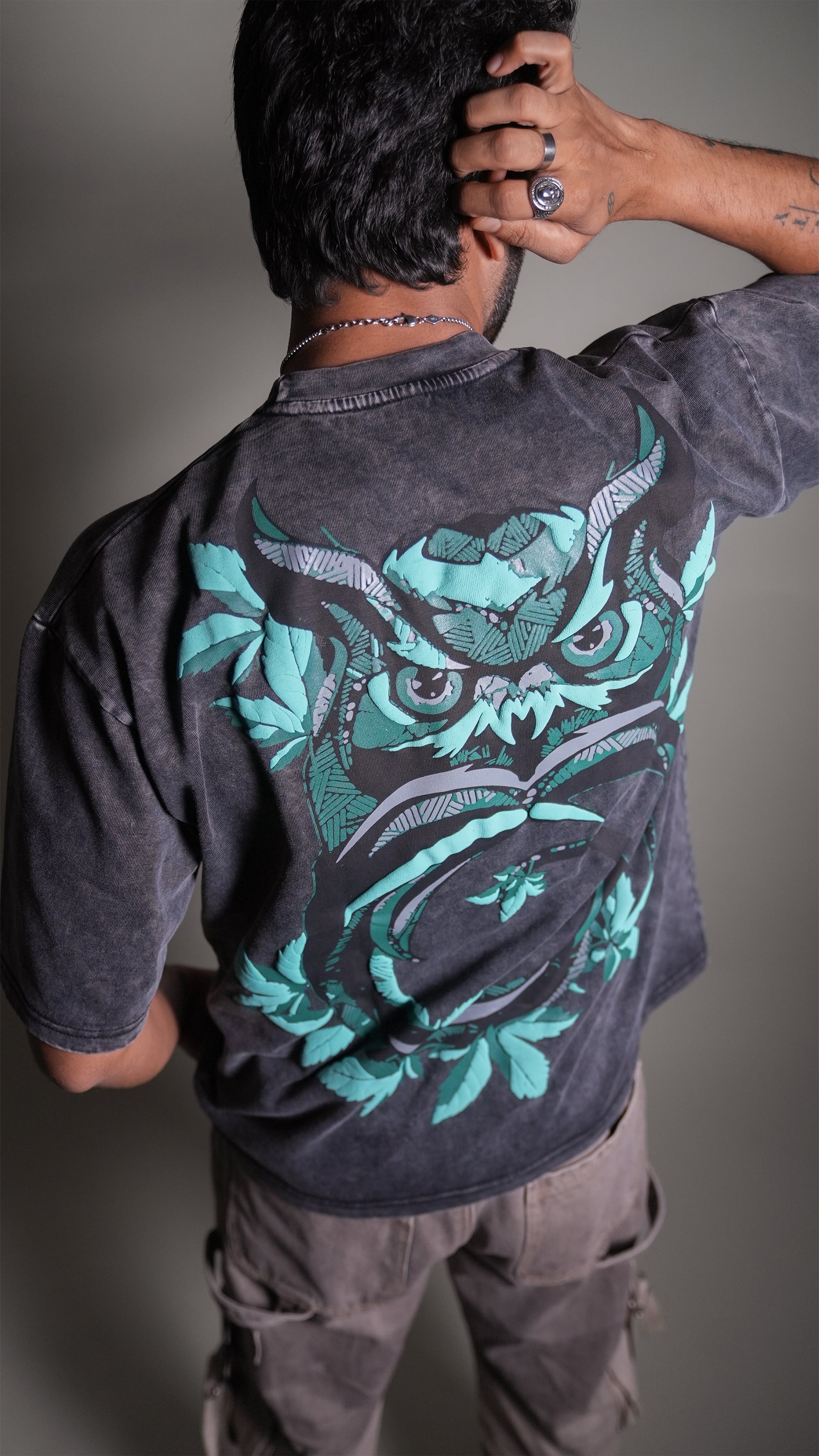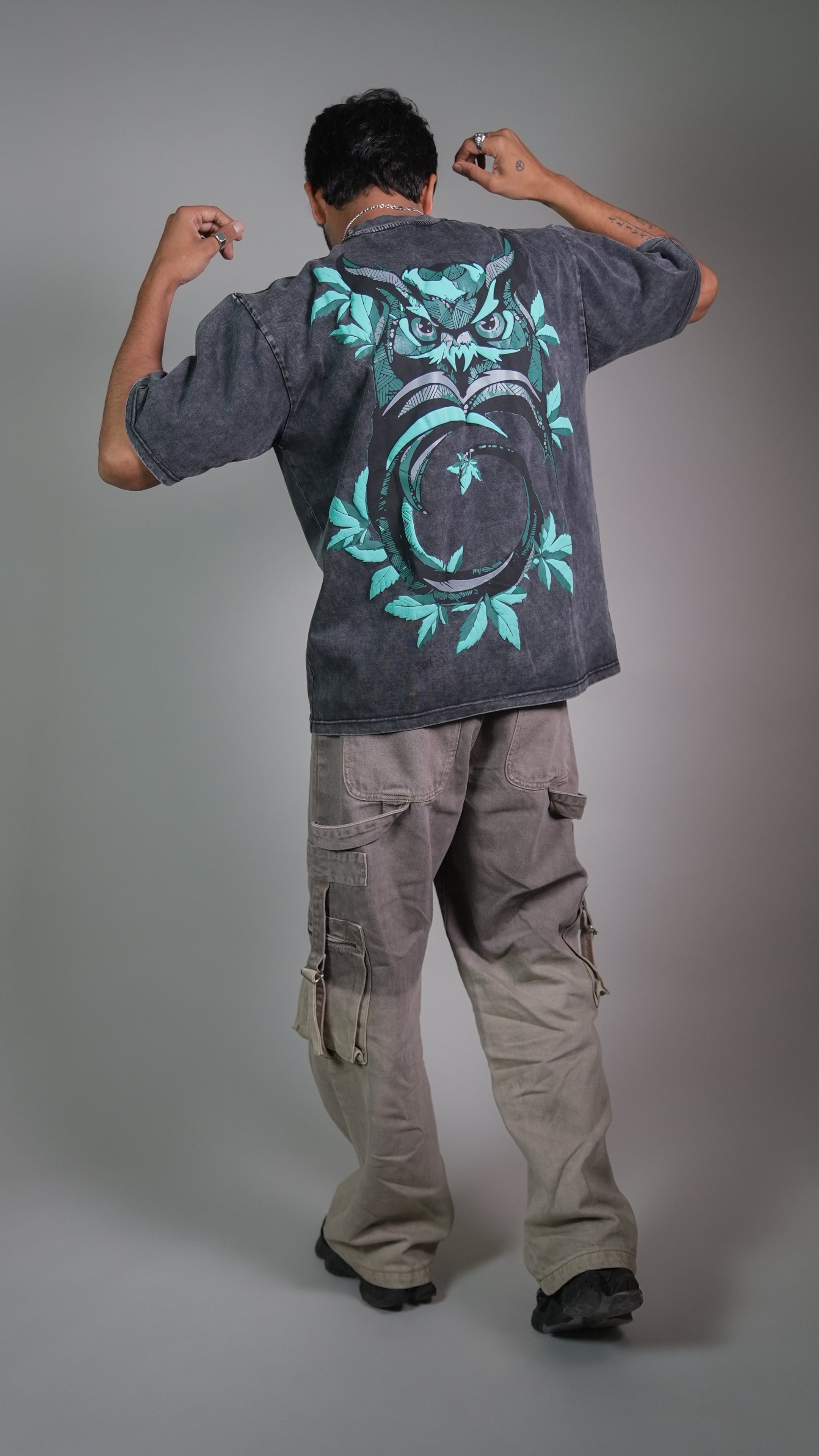 OWL VISION DARK GREY ACIDWASH MEN’S OVERSIZED T-SHIRT
