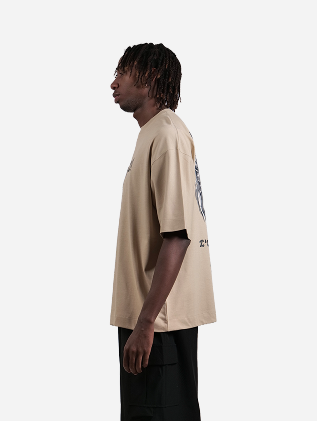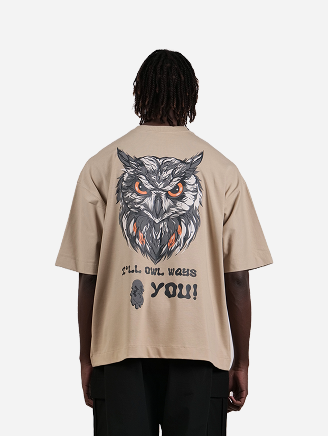 Owl Ways - Beige Graphic Drop Shoulder Unisex Oversized T-Shirt