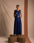 Paavada Dress: Long well fitted Indigo dress with adjustable sleeves