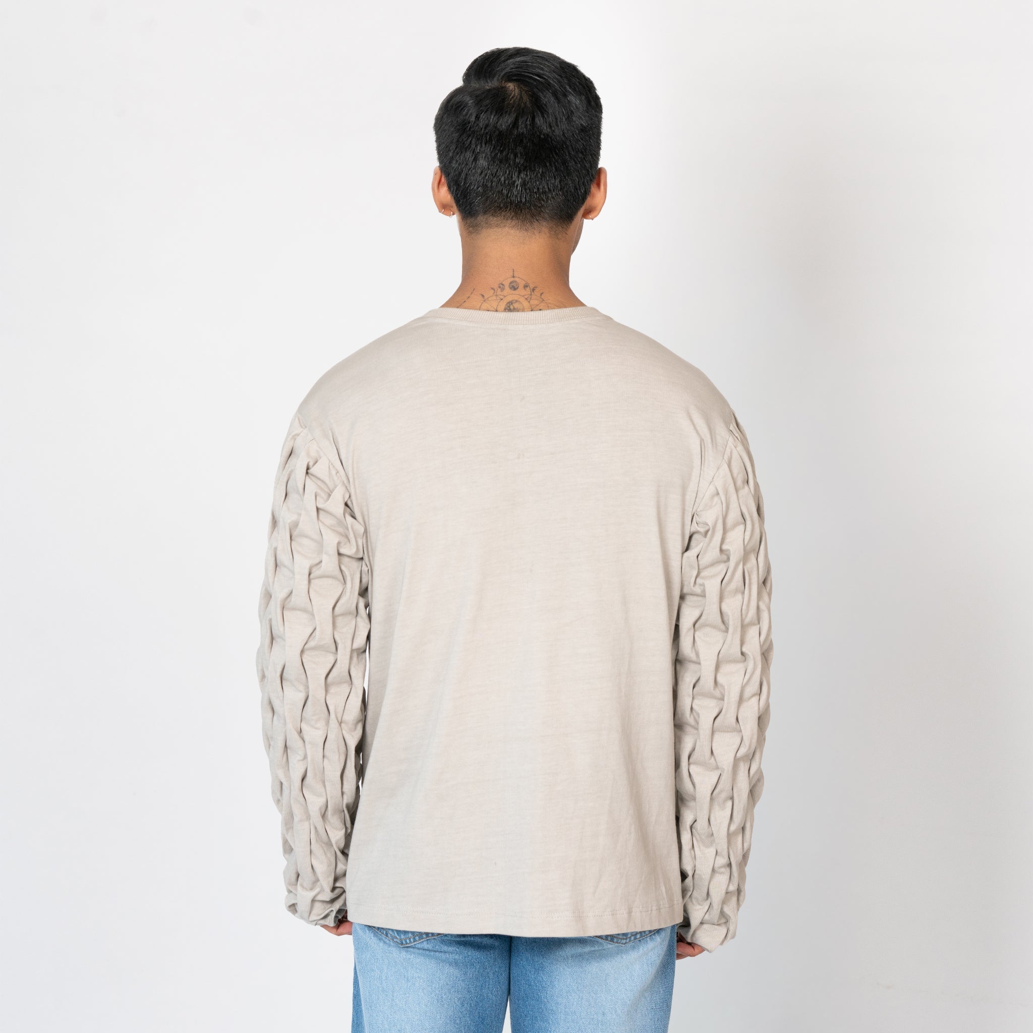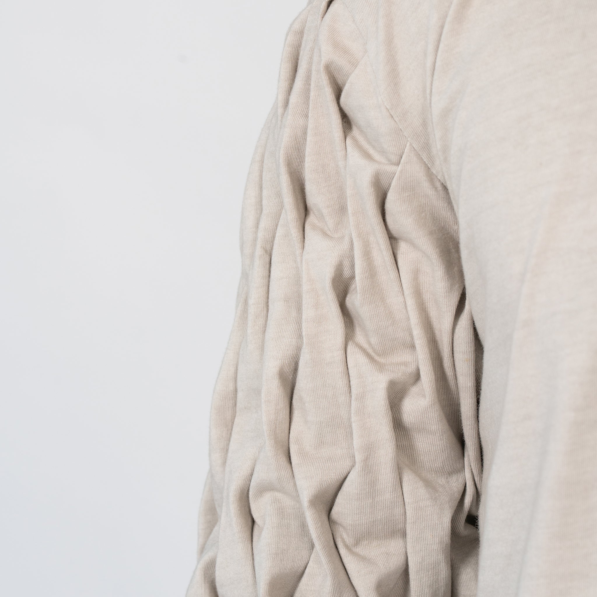 Parafoam Sculpt T-Shirt is a premium lightweight structured t-shirt designed with architectural precision and a clean, sculptural silhouette. A modern grey t-shirt featuring smocked sleeve detailing for controlled volume and everyday wearability.