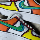 Masterfully integrating a hand painted red backtab and eyestay, orange foxing, a yellow tip and the blue-green swoosh along with maroon, white and black details, the Pastel AF1 is a piece of art right out of your favourite childhood colouring book.