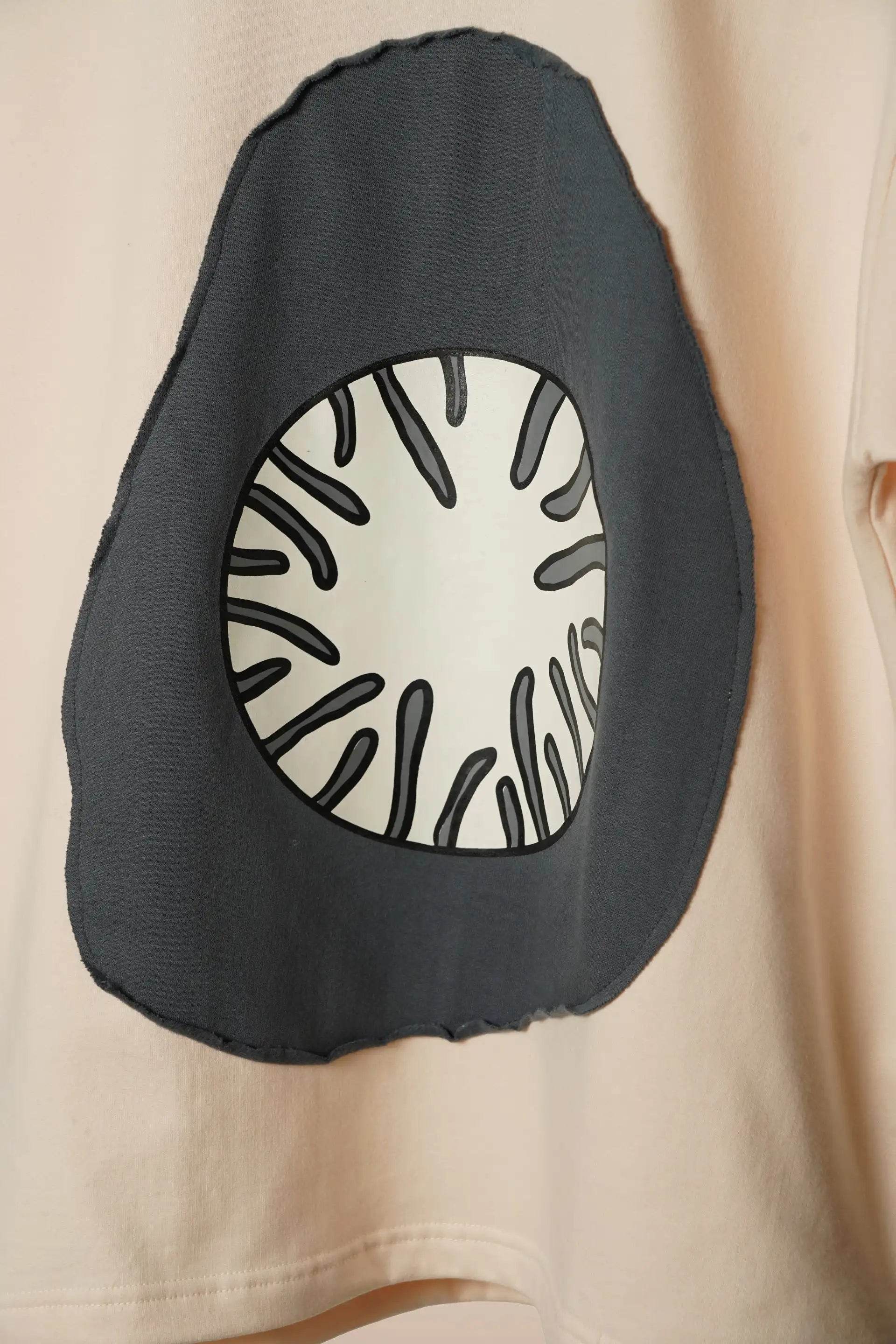 The design is heavy on the front consisting of dual toned patchwork in the torso area symbolizing healing and emotional well-being.