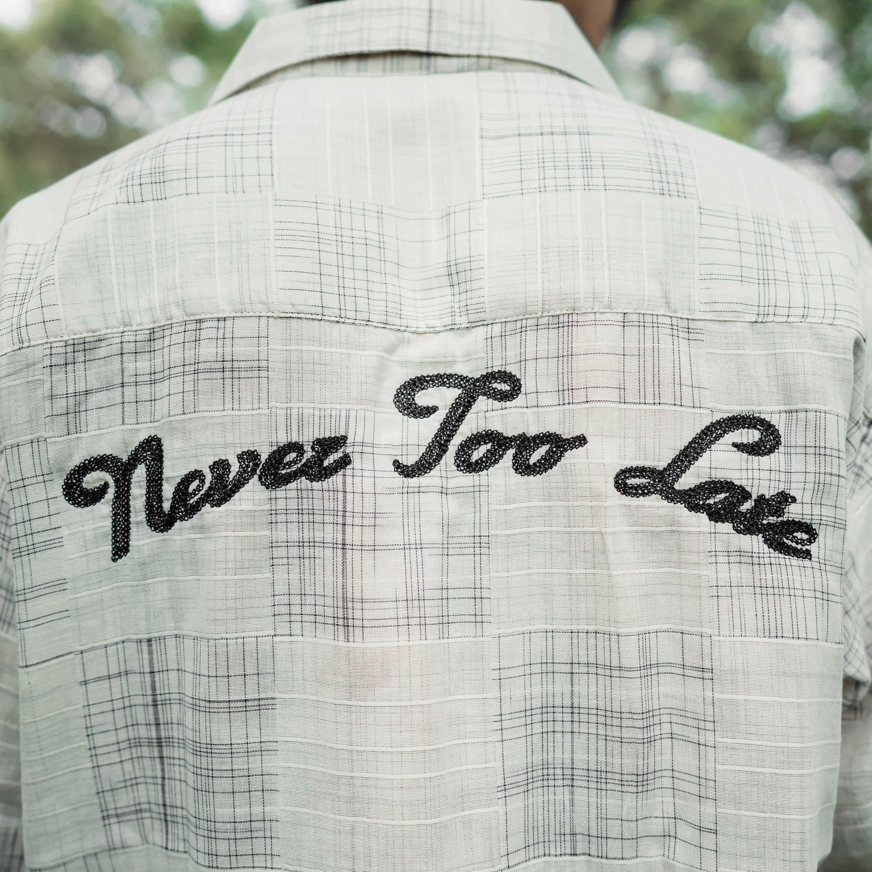 Embroidered quote on the back serves as a reminder to everyone that it is never too late to do the right thing.