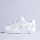 Get ready to strut down the aisle in style with the PEARL FLOWER AF1! These sneakers are perfect for weddings, featuring artfully crafted pearls and embroidered flowers. Not only do they add a touch of elegance to your outfit, but they also provide comfort for all-day wear. Step into the perfect combination of fashion and function with these unique kicks!