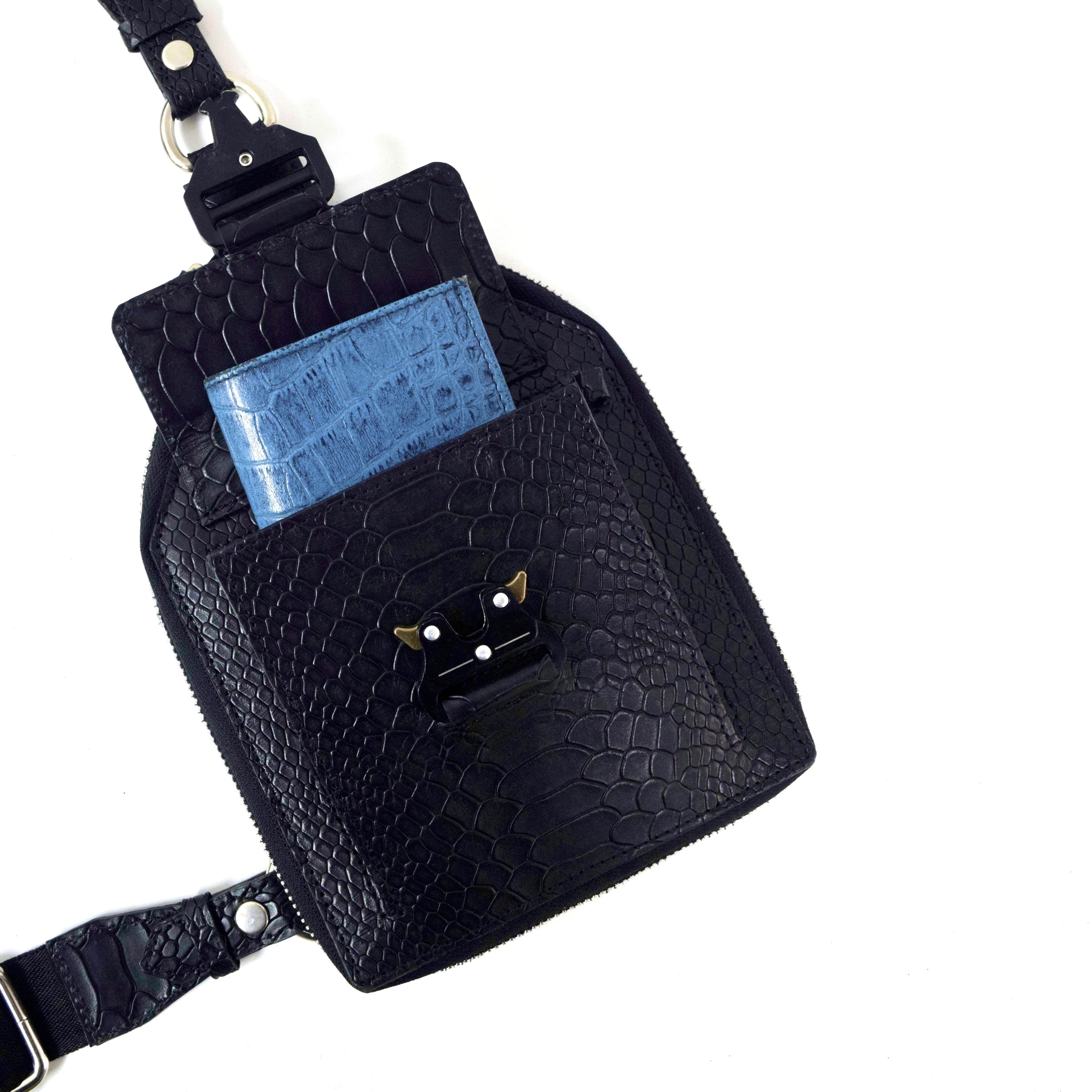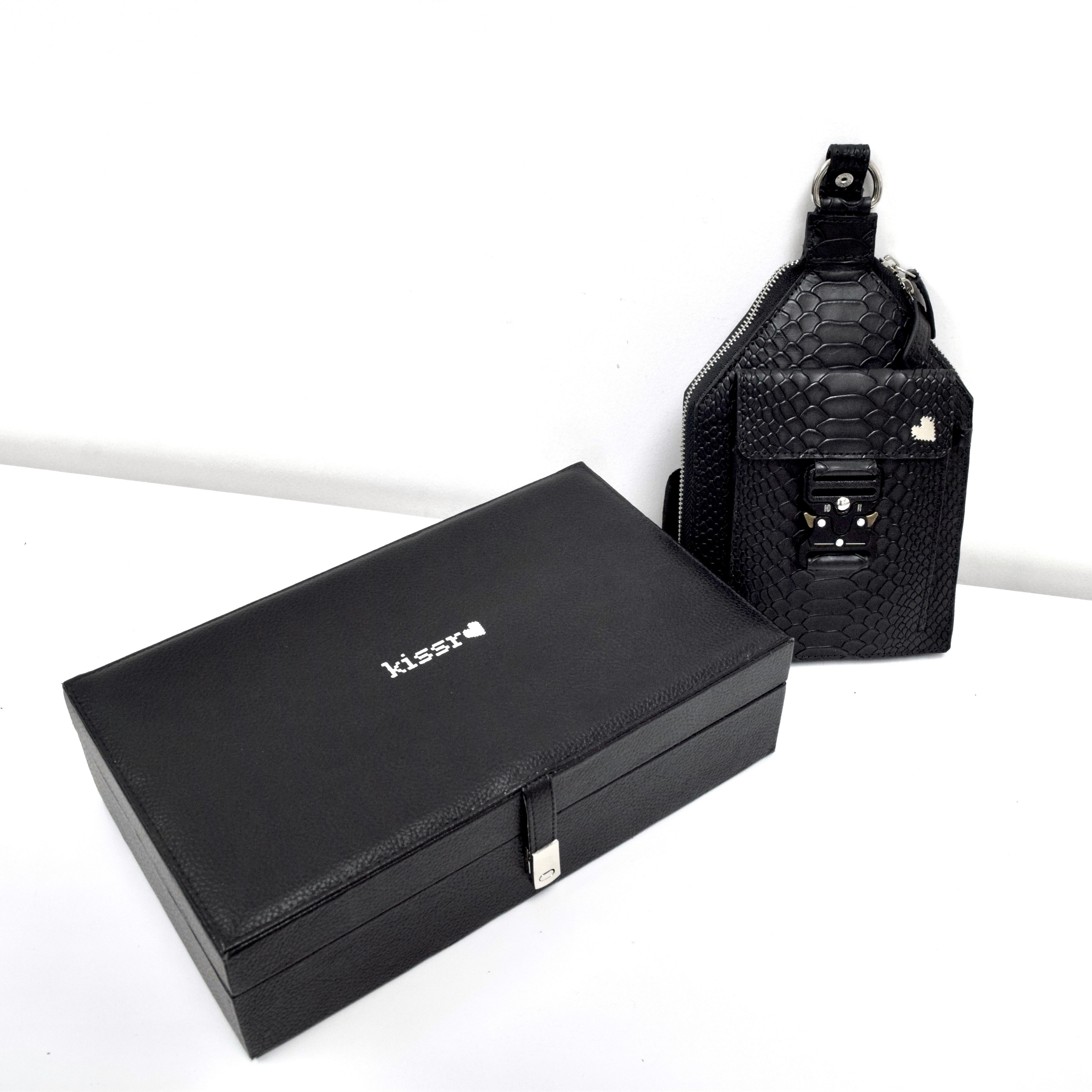 The Take Me Home bag’s angular design makes it stand out from the usual set of crossbody bags. The front boasts an industrial tactical buckle that is purposed for harnesses but repurposed by Kissr. It can be worn in left or right orientation. The back of the bag has a mesh pocket that can be used to store thin items like your mask, cash, cards or receipts. 2 sunglass loops with different diameters on the front make it easier to carry your thick and thin frames. The bag can be worn as a crossbody on the front or your back, and also over just one shoulder.