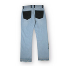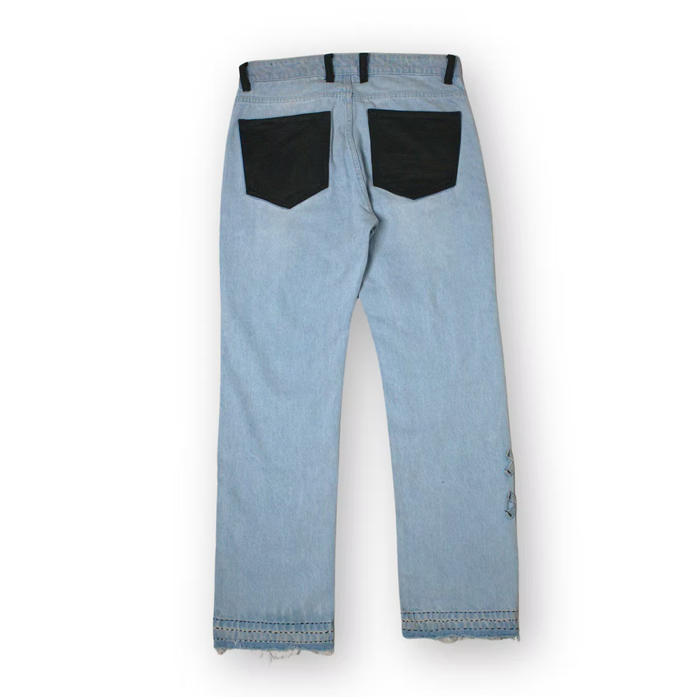 Crafted from premium black fabric with a traditional texture and glossy finish, "Piece of Gaudd 2" is a unique denim masterpiece. Its standout feature? Double knee patches adorned with silver, big rounded rivets, adding industrial elegance to its rugged charm. From the workshop to the city streets, embrace individuality with this exclusive creation from Gauddly.