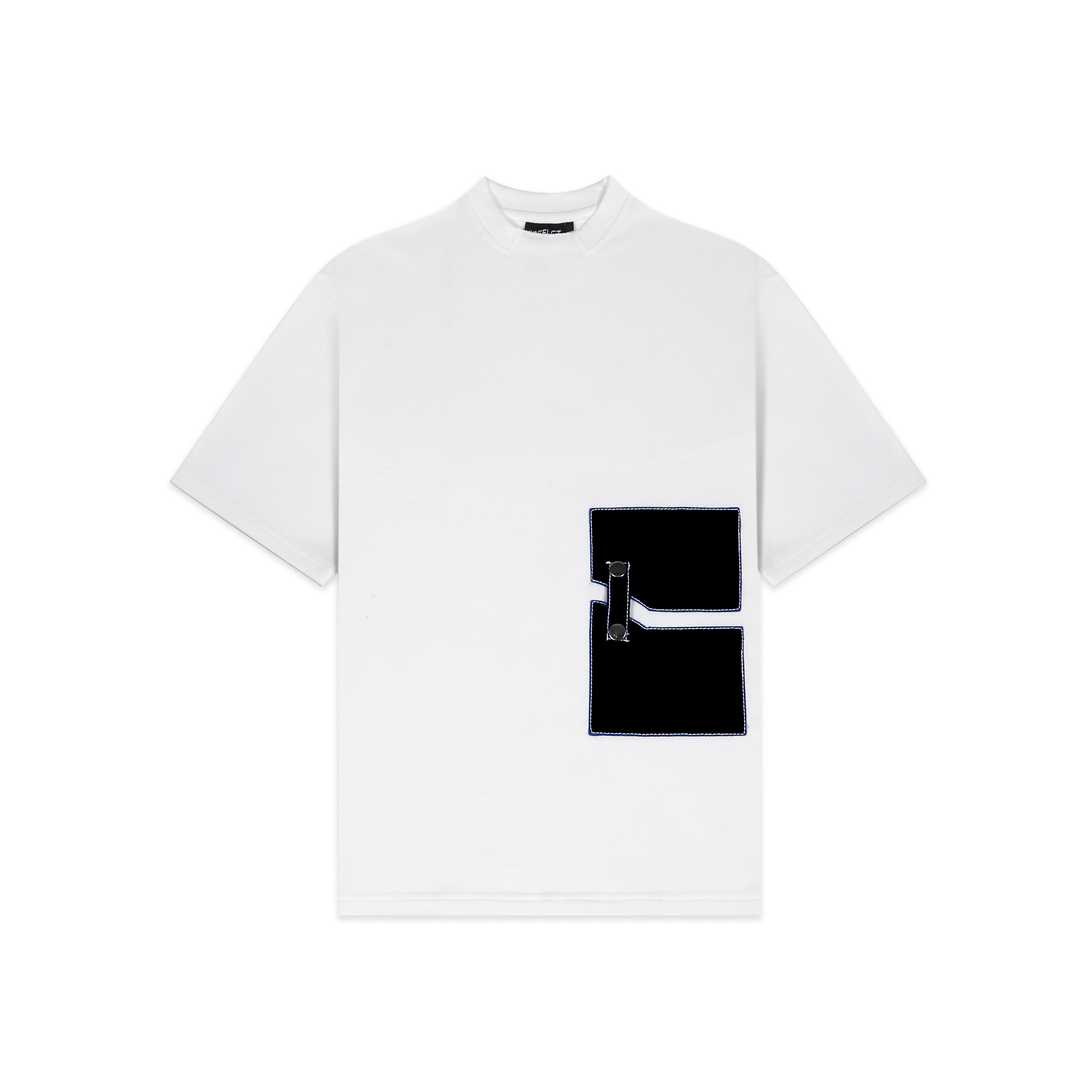 Elevate your wardrobe with this Kreflct’s Pocket? Tee. The front features a bold, stylized pocket patch in a striking contrast color, enhanced with a loop and button detailing. The standout feature of this piece is the innovative half-and-half collar design - part ribbed, part smooth, adding a twist to the classic t-shirt silhouette.
