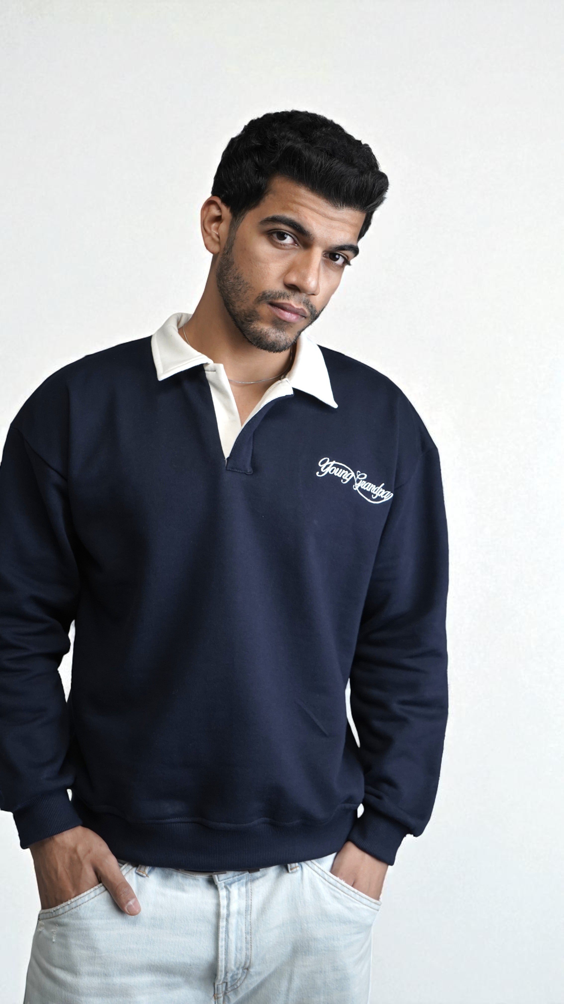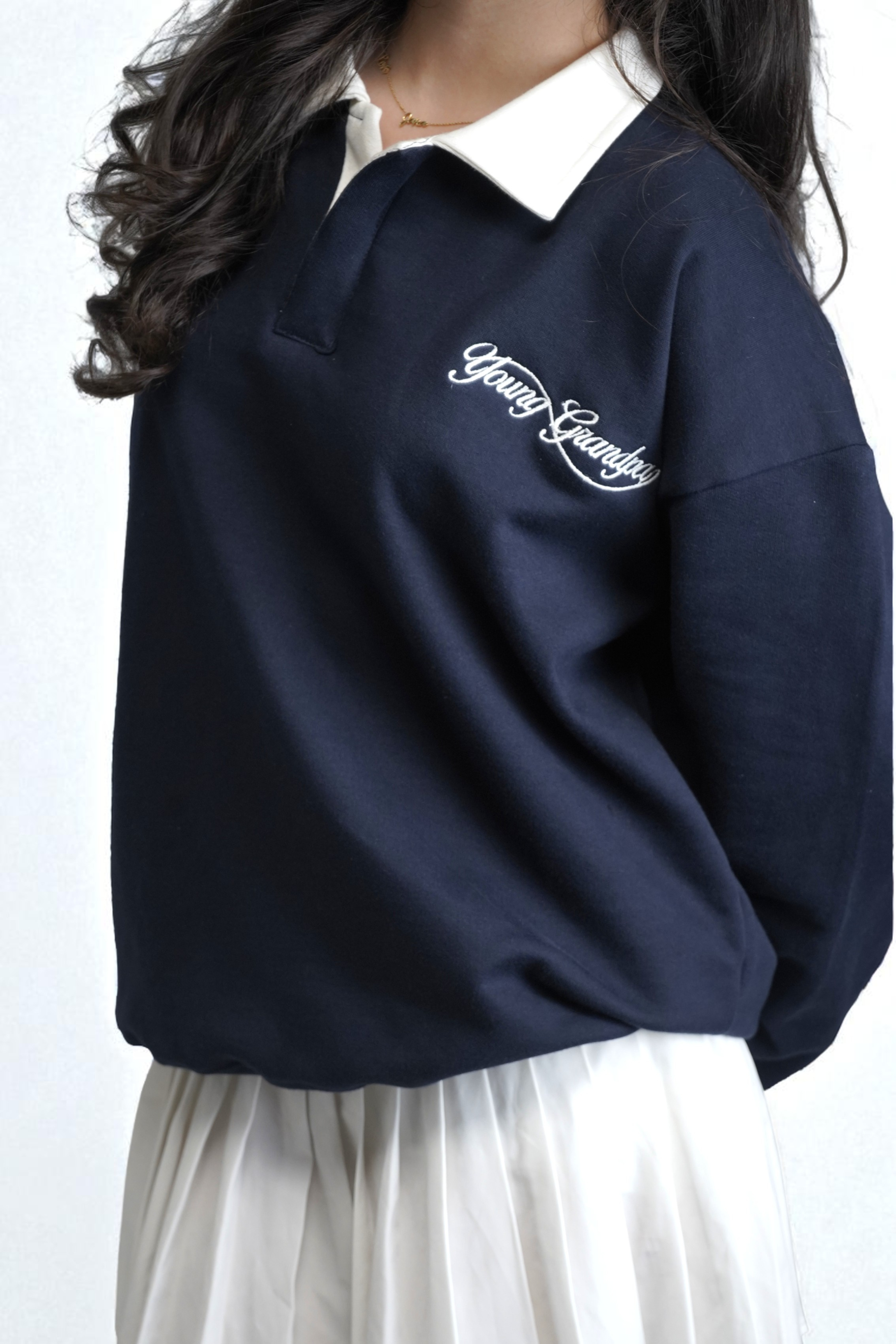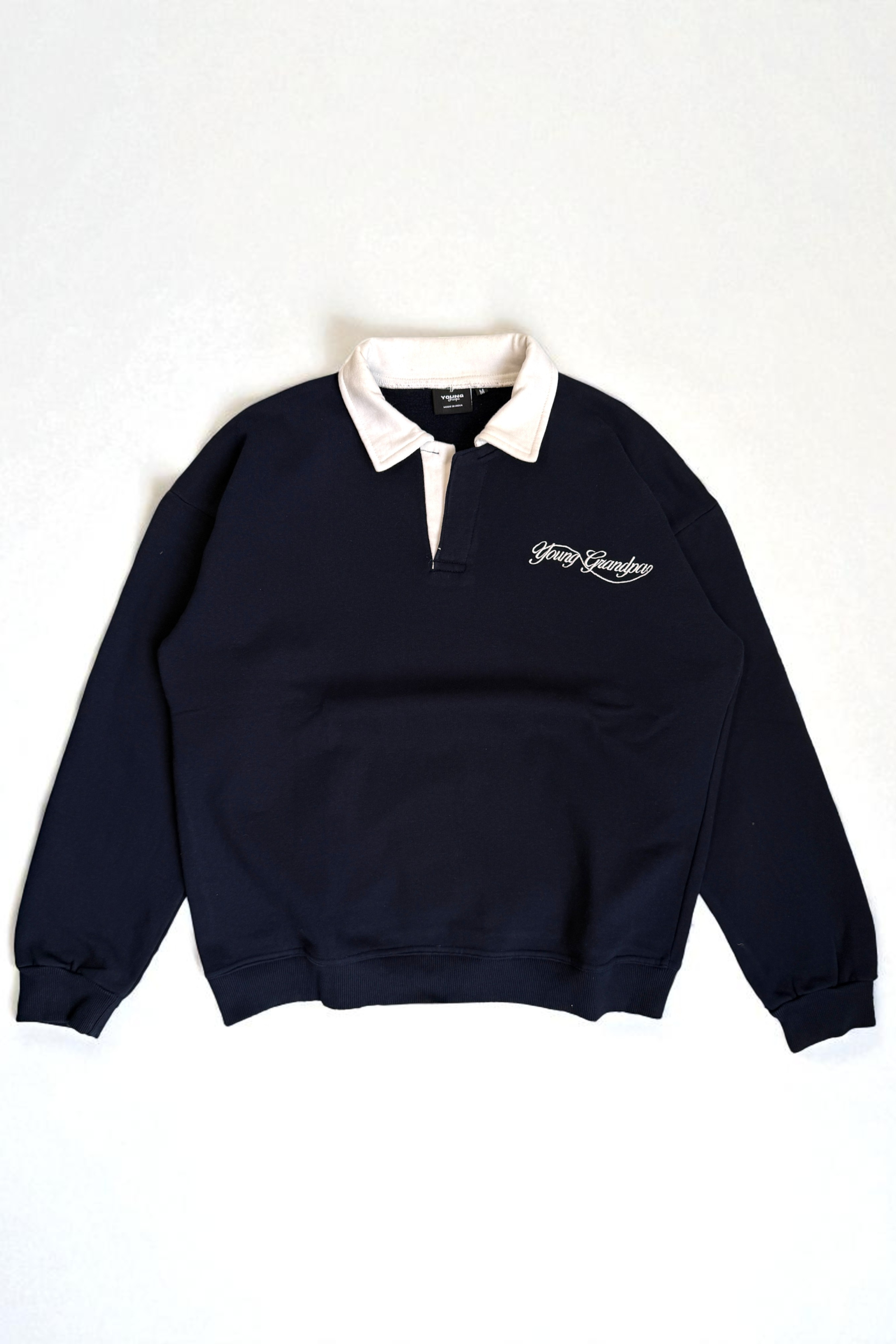 A cursive Young Grandpa logo with an elegant design, where the Y and A are seamlessly connected by flowing lines, resembling the reins of a horse, symbolising freedom and adventure.
