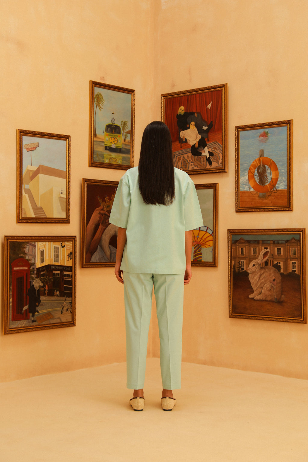 Wake Your Dreams' Poplin shirt is cropped at the front and lengthened at the back, embodying grace and sophistication. Muted colour matched buttons to elevate the shirt into a formal attire. Available in two colour ways- Twilight Black and Matcha.