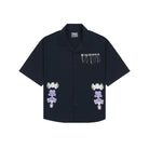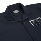 Crafted from navy blue 100% polyester Barbie fabric for supreme softness and elegant flow, this half-sleeve shirt balances subtlety and intensity.