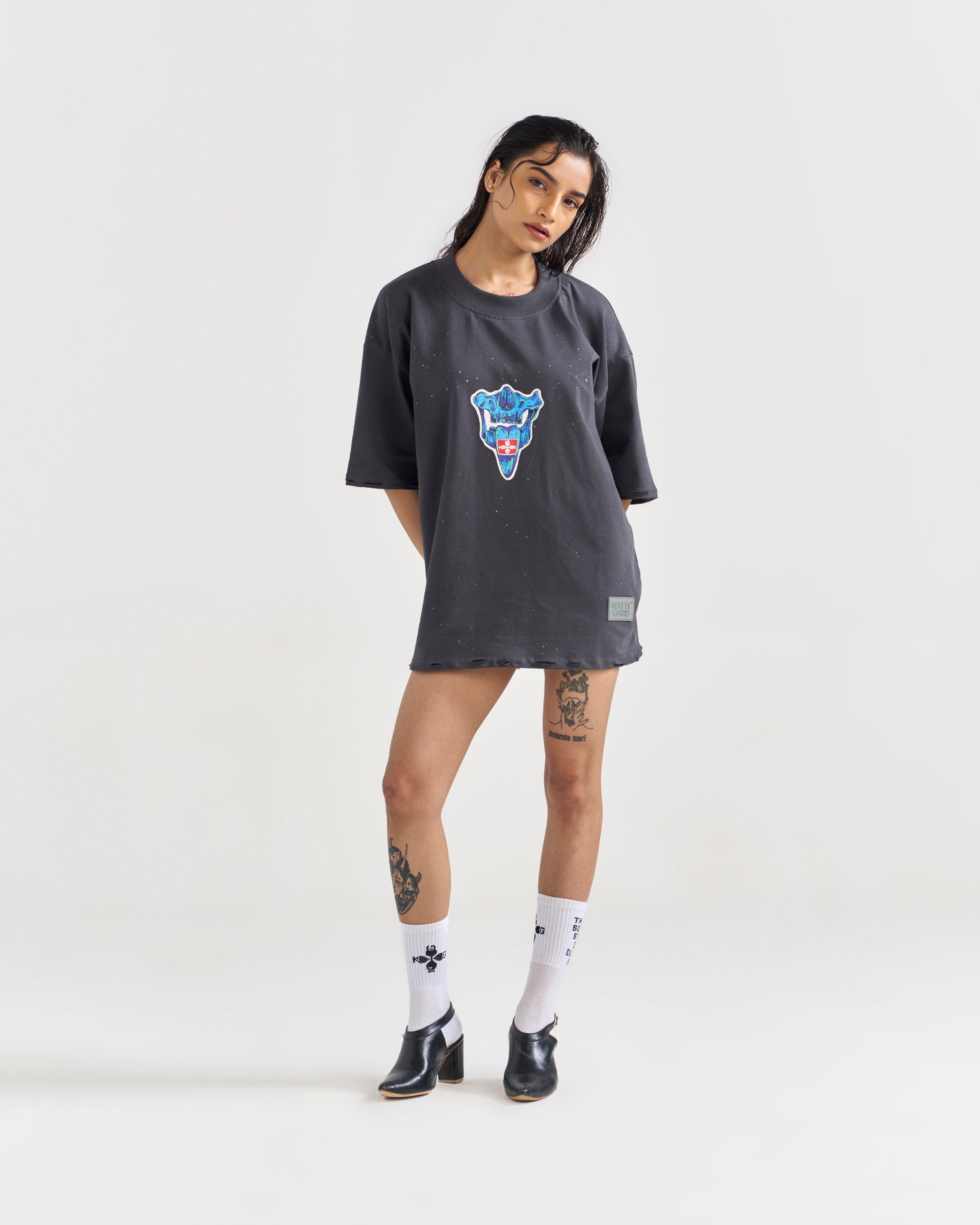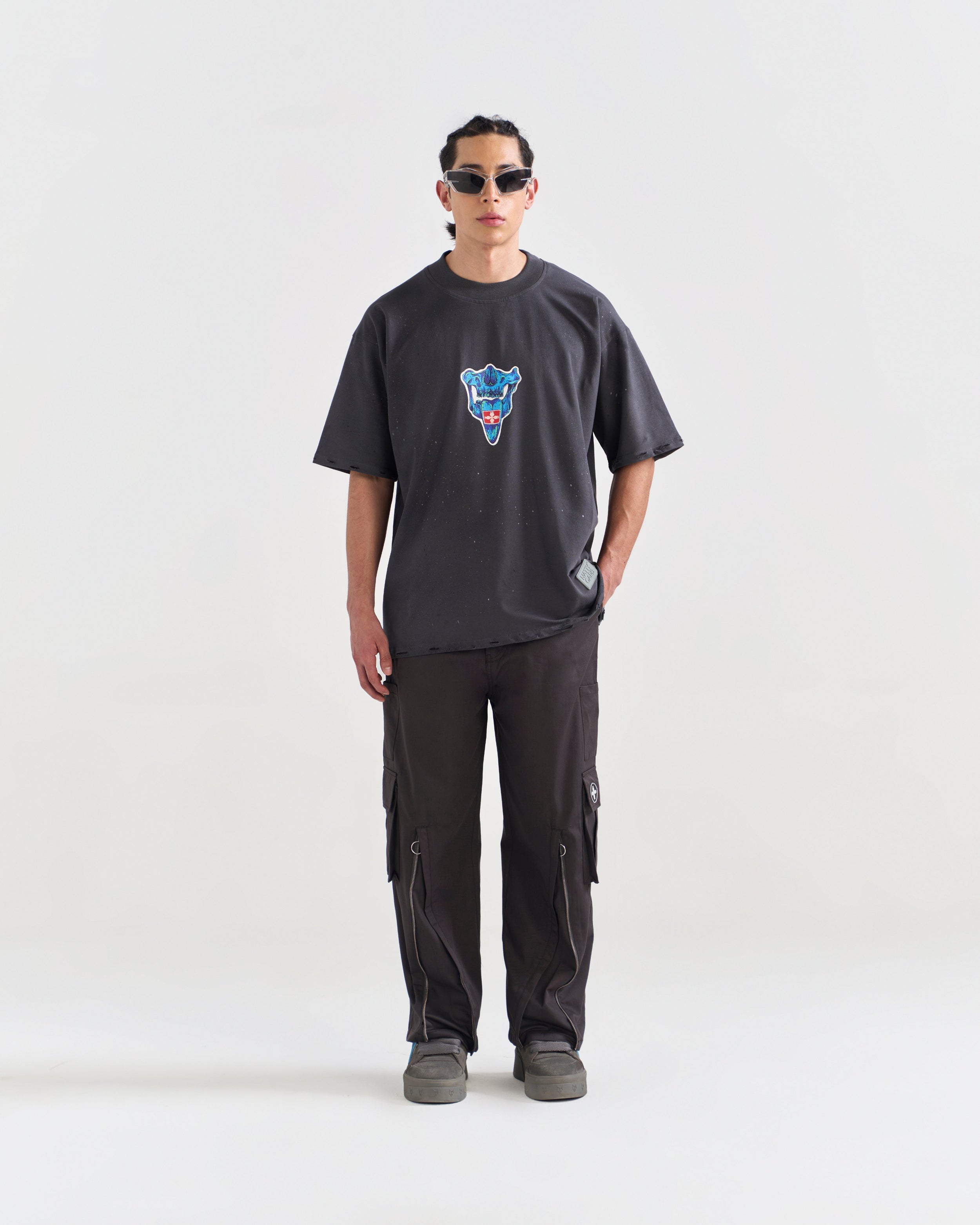 - Raw Distressing on Sleeves & Hem
