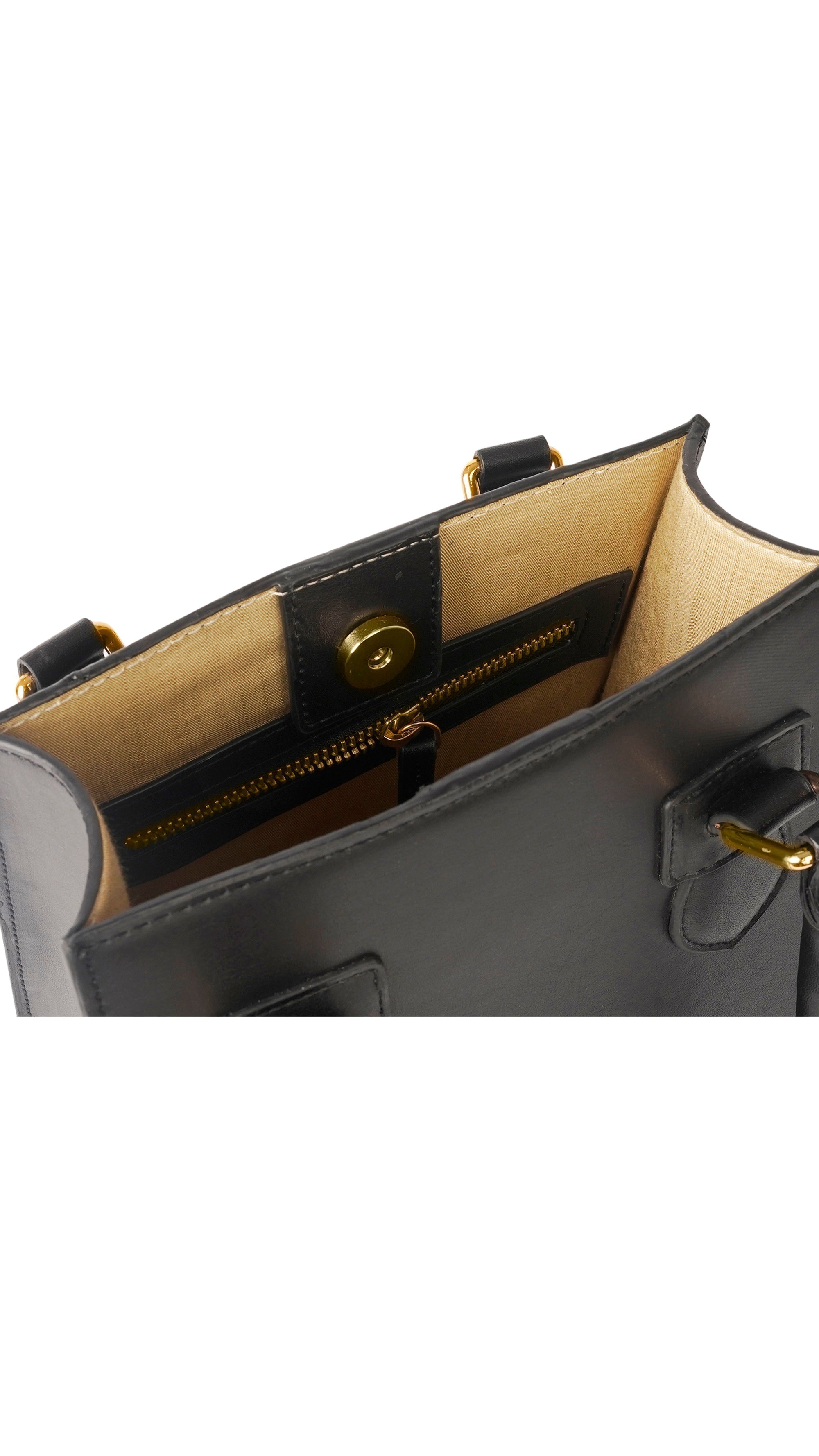 A structured handheld bag with a magnetic snap button closure for effortless access. Made from plant-based material and available in various materials, it’s designed for polished days and intentional carrying.