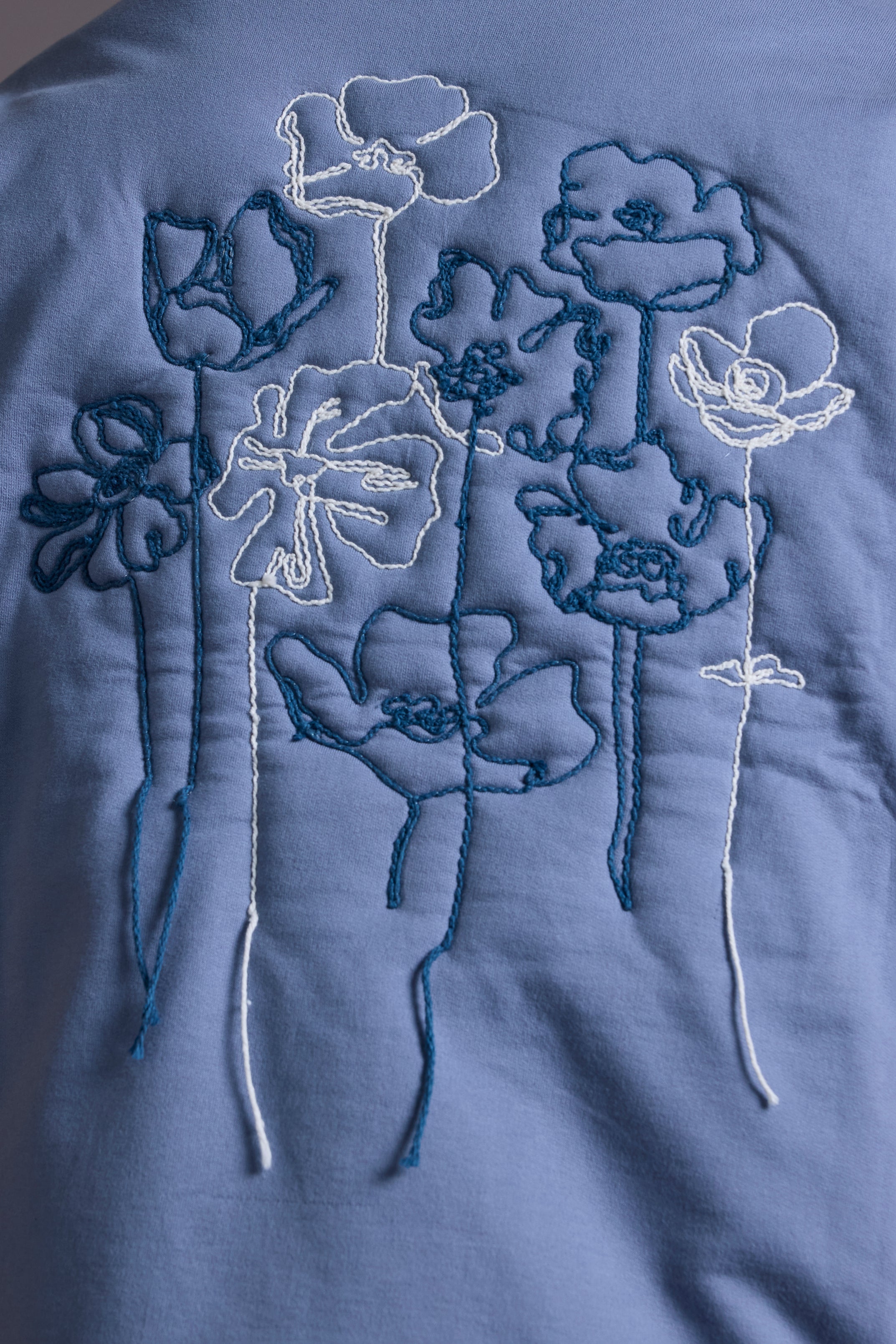 Quilting floral details on the back