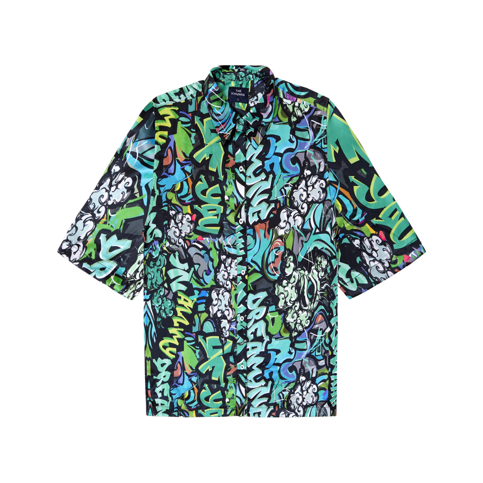 Introducing The Khwaab's realm graffiti shirt, a piece that showcases this season's custom graffiti, featuring a new color palette and style of relaxed fit with button closure. Made with medium weight satin.