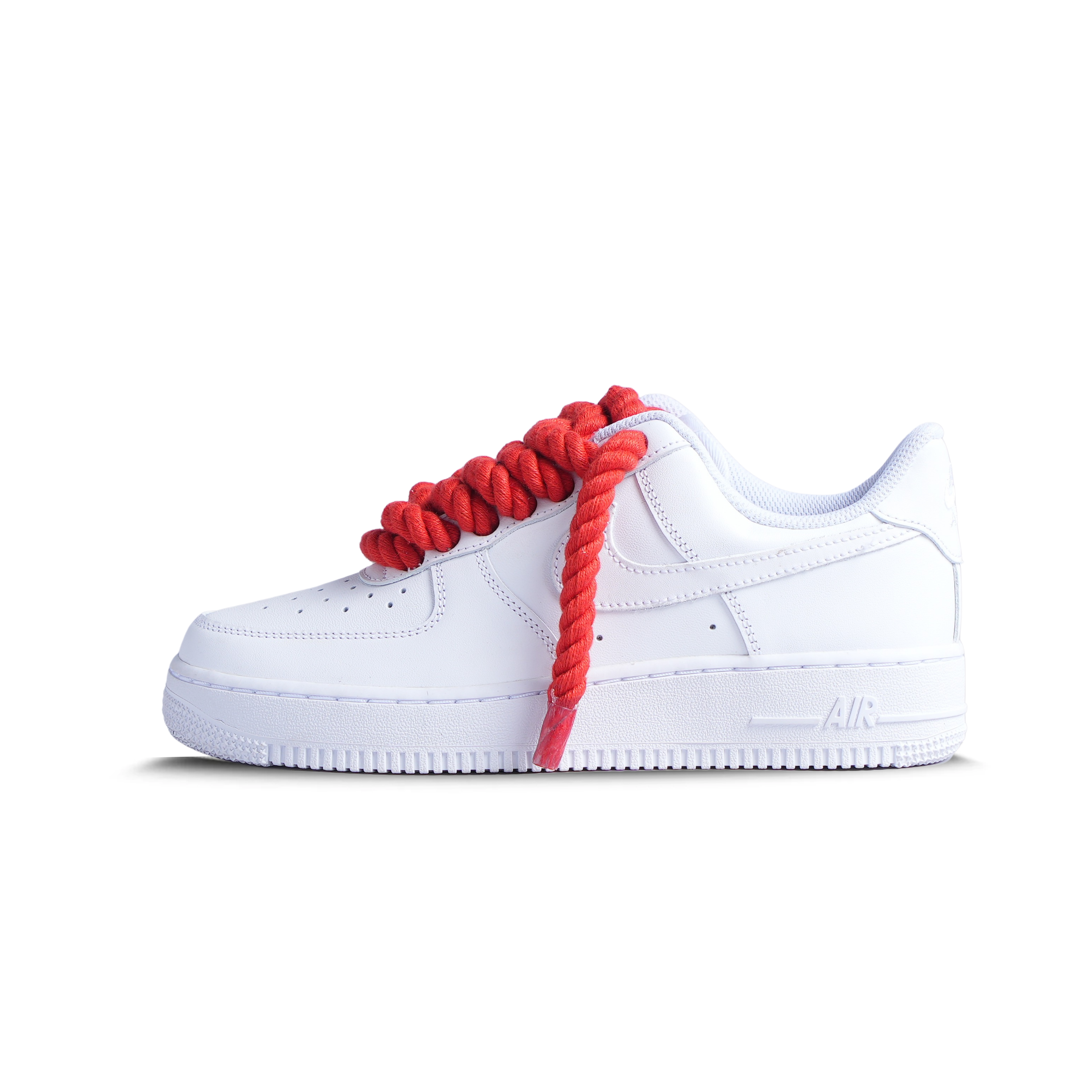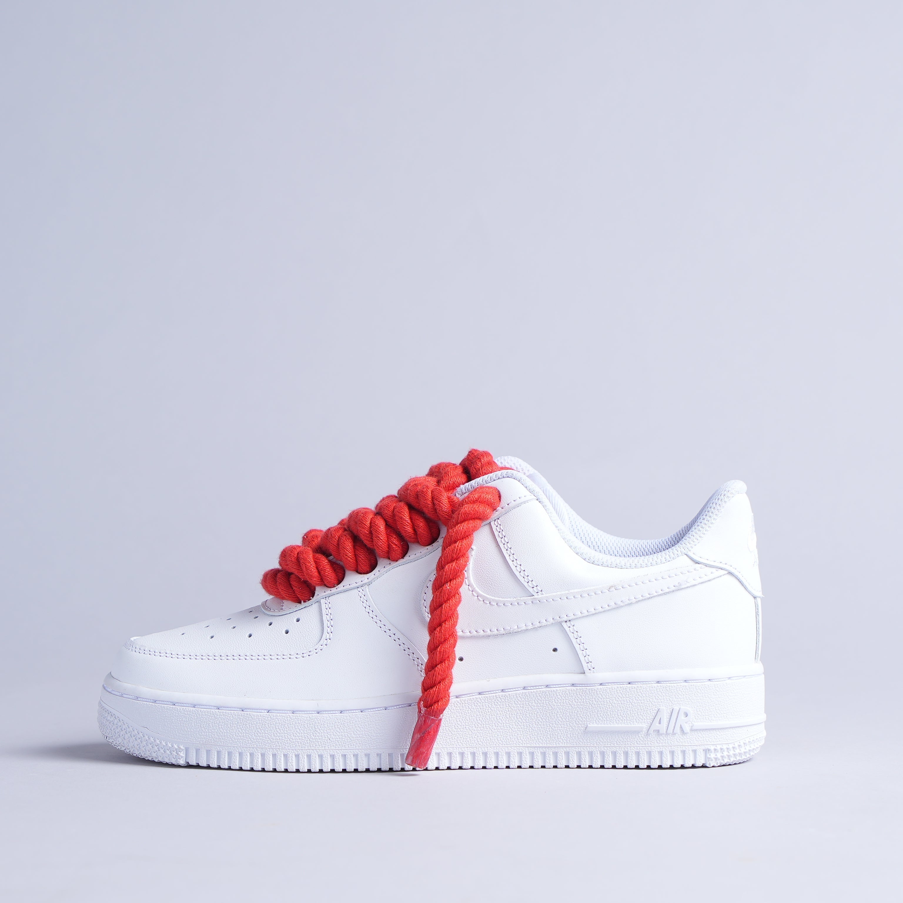 Step up your sneaker game with the RED ROPE AF1! These triple white AF1s come with our fan favourite chunky rope laces, making them the perfect addition to any sneaker collection. Step out in style and comfort with these must-have kicks. (No? Af1so-lutely!)