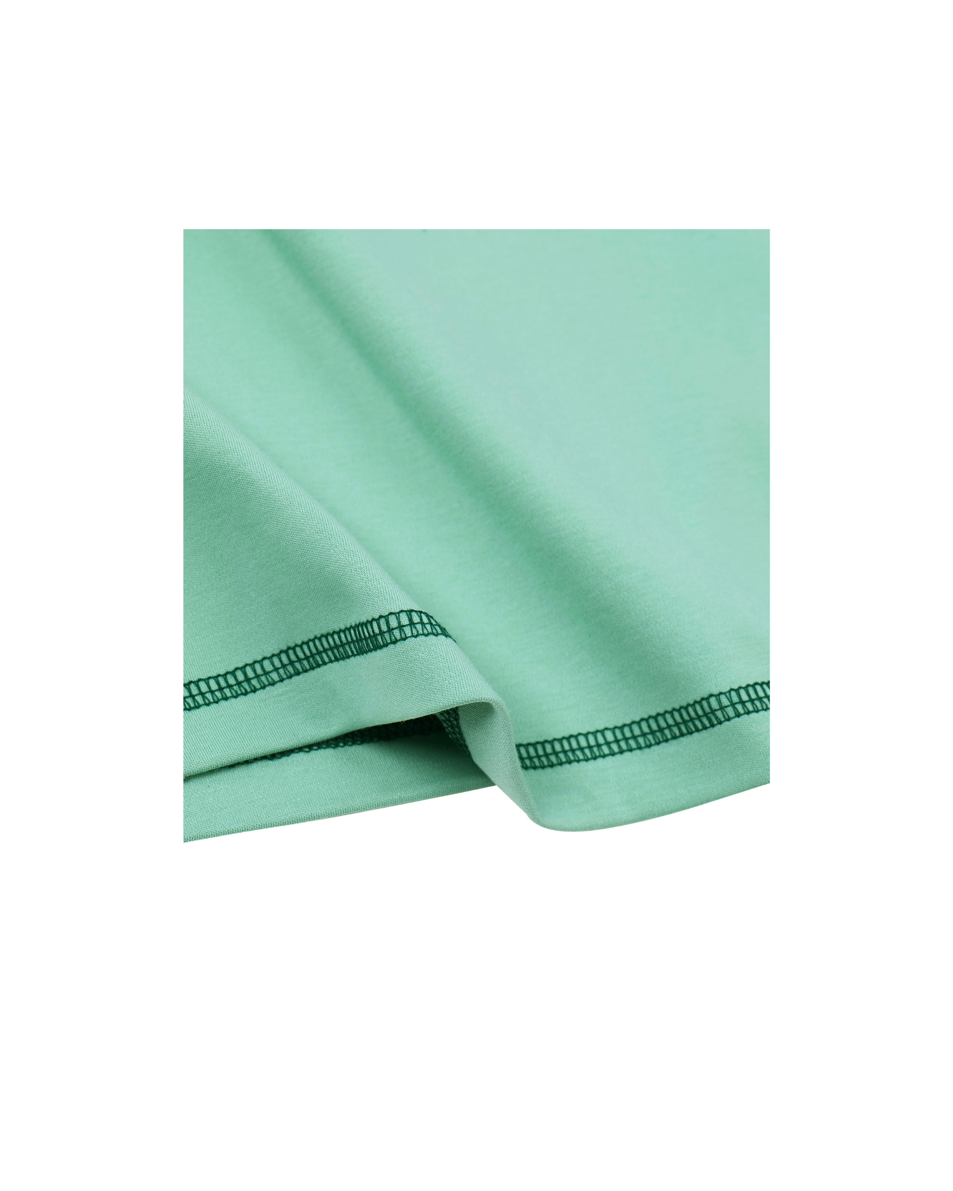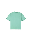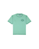 Reflections tee is crafted in mint green mid weight cotton with contrast forest green flat lock stitching & putti reflections graphic at the front. Relaxed fit