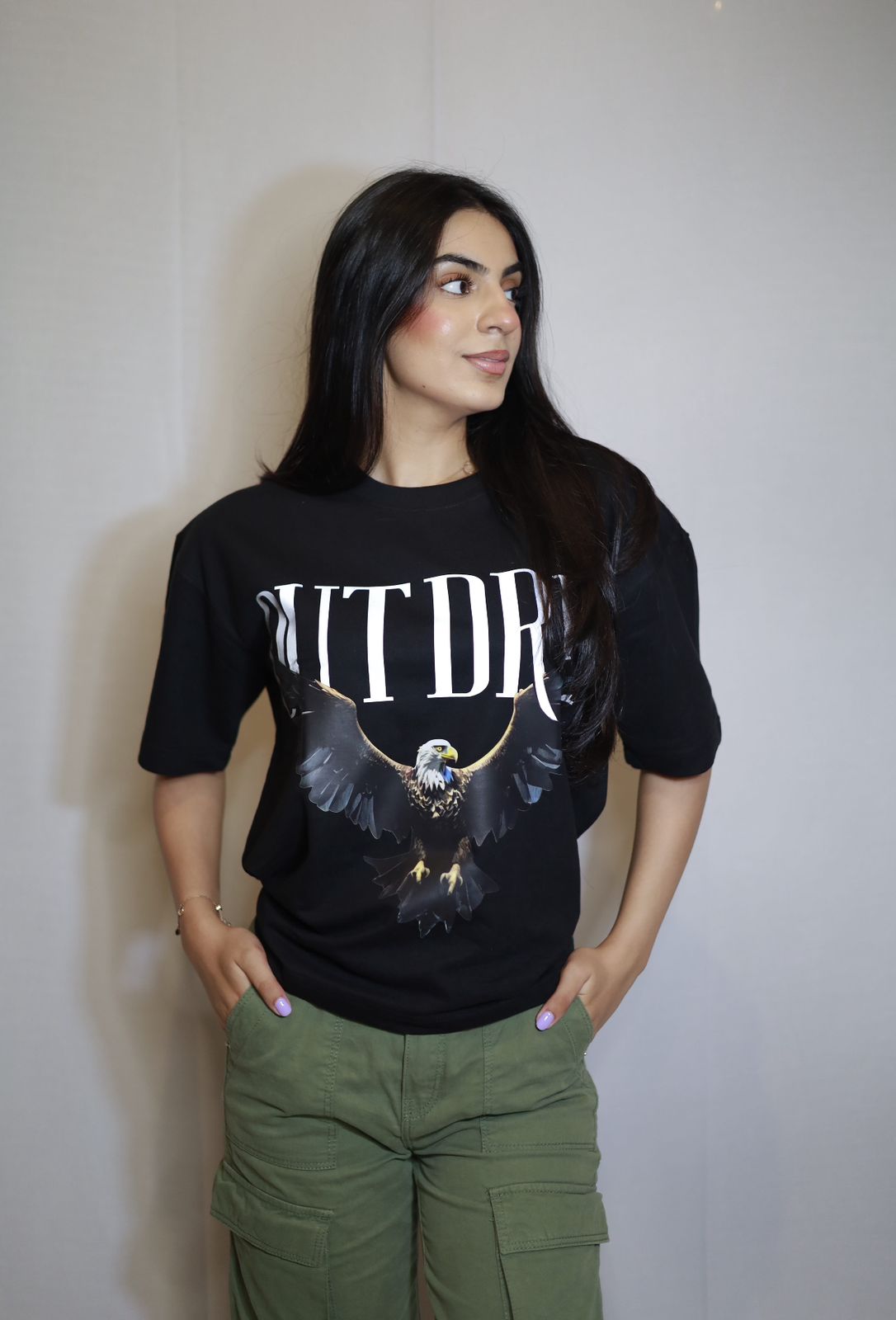 Unleash bold energy with the Reflective Eagle Tee by Outdrip. The DTF print of a powerful eagle on the front symbolizes strength and freedom, while the reflective Outdrip branding adds a futuristic touch, making this tee a standout piece both day and night.