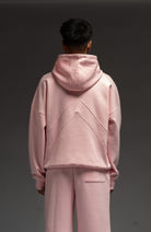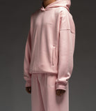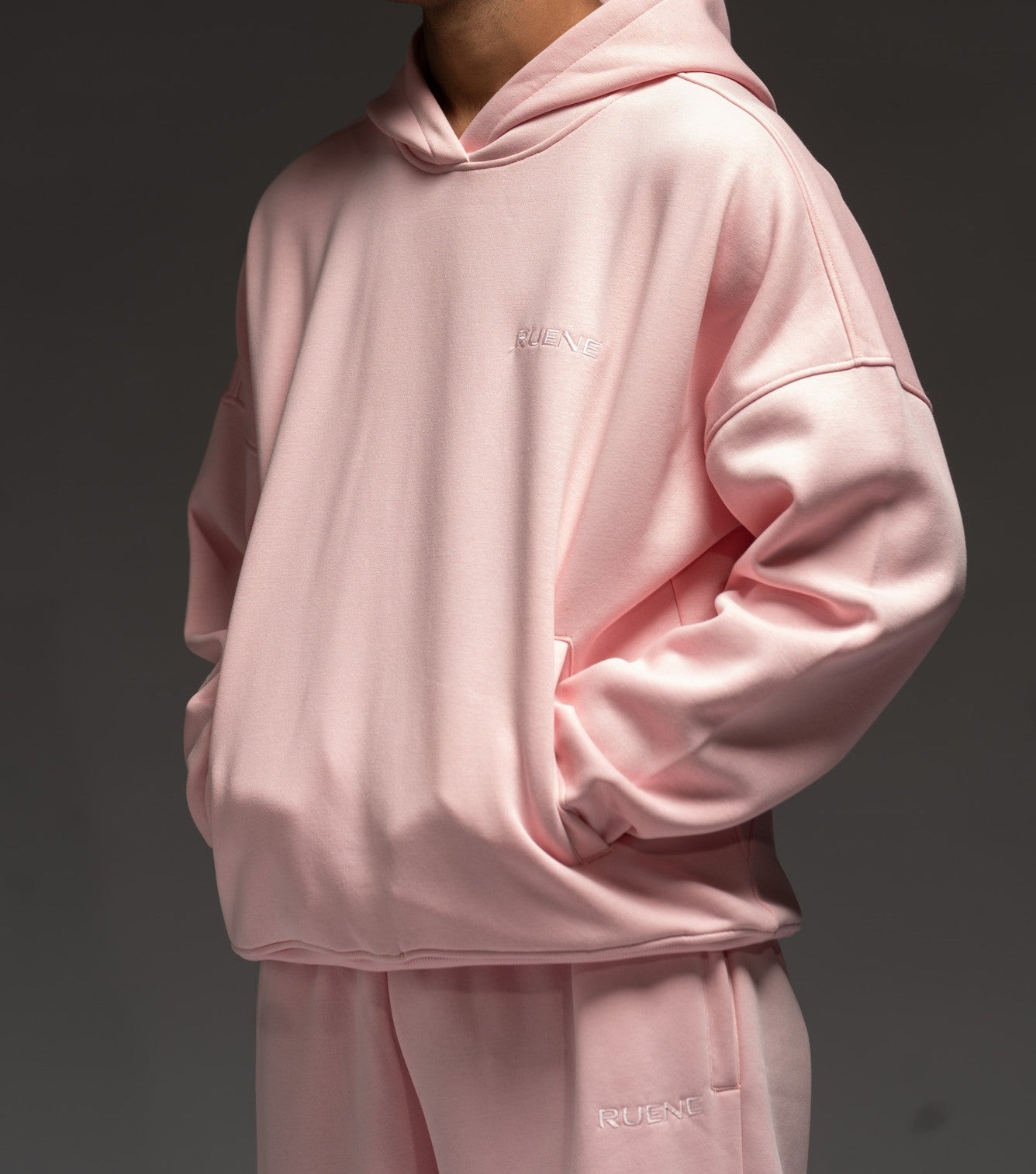 A rich pink hoodie featuring Ruene’s signature cut-and-sew detailing on the back and tonal embroidery on the front. Soft, structured, and built for a clean everyday silhouette.