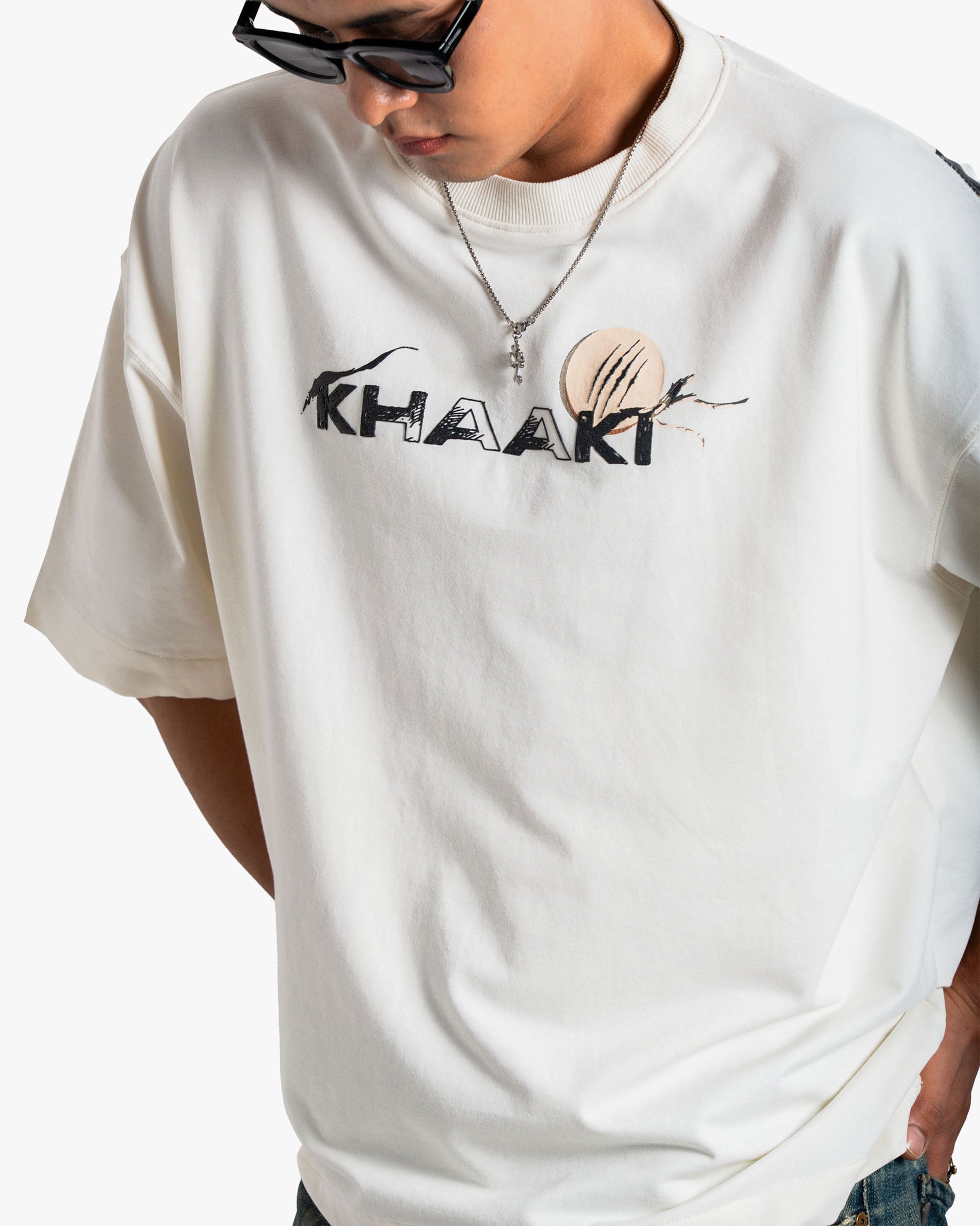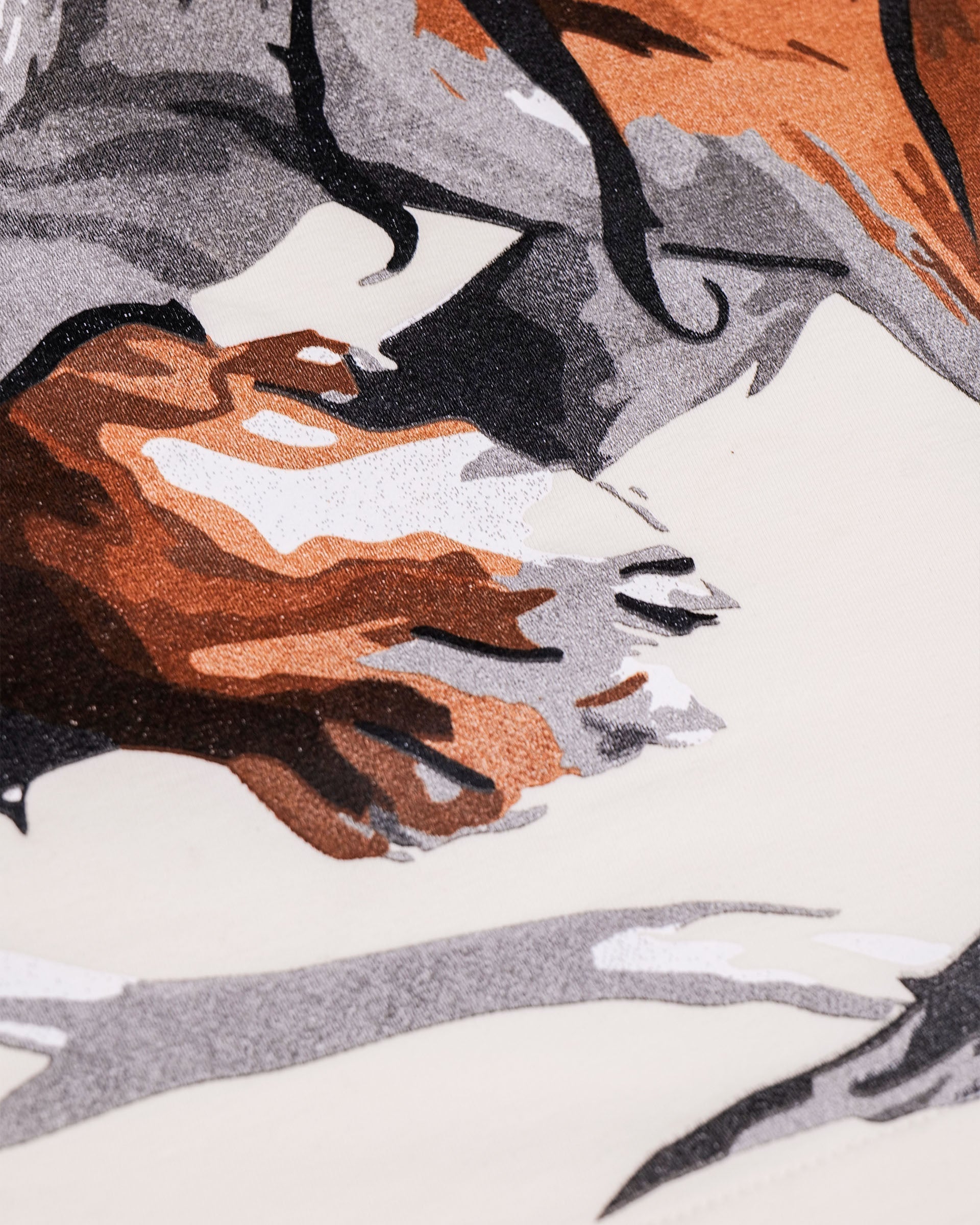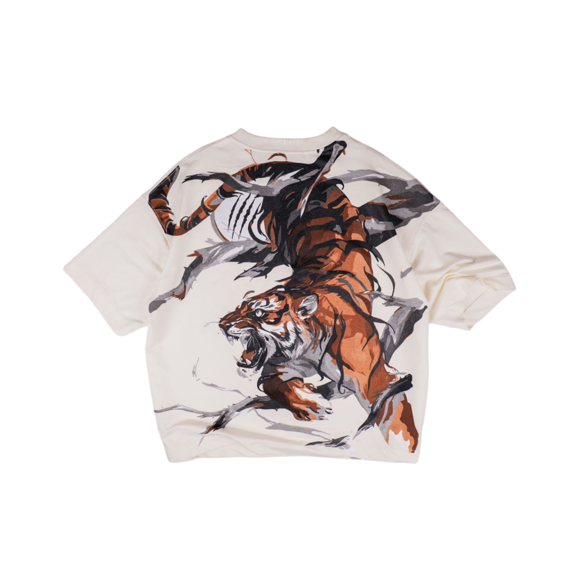 Ruthless—a premium, Made from ultra-smooth Cotton Spandex Terry Looper, this is a high-quality oversized t-shirt that’s both durable and supremely soft. The heavyweight 250 GSM cotton t-shirt in off-white colour showcases a striking tiger graphic back print that captures movement and strength with painterly flair.