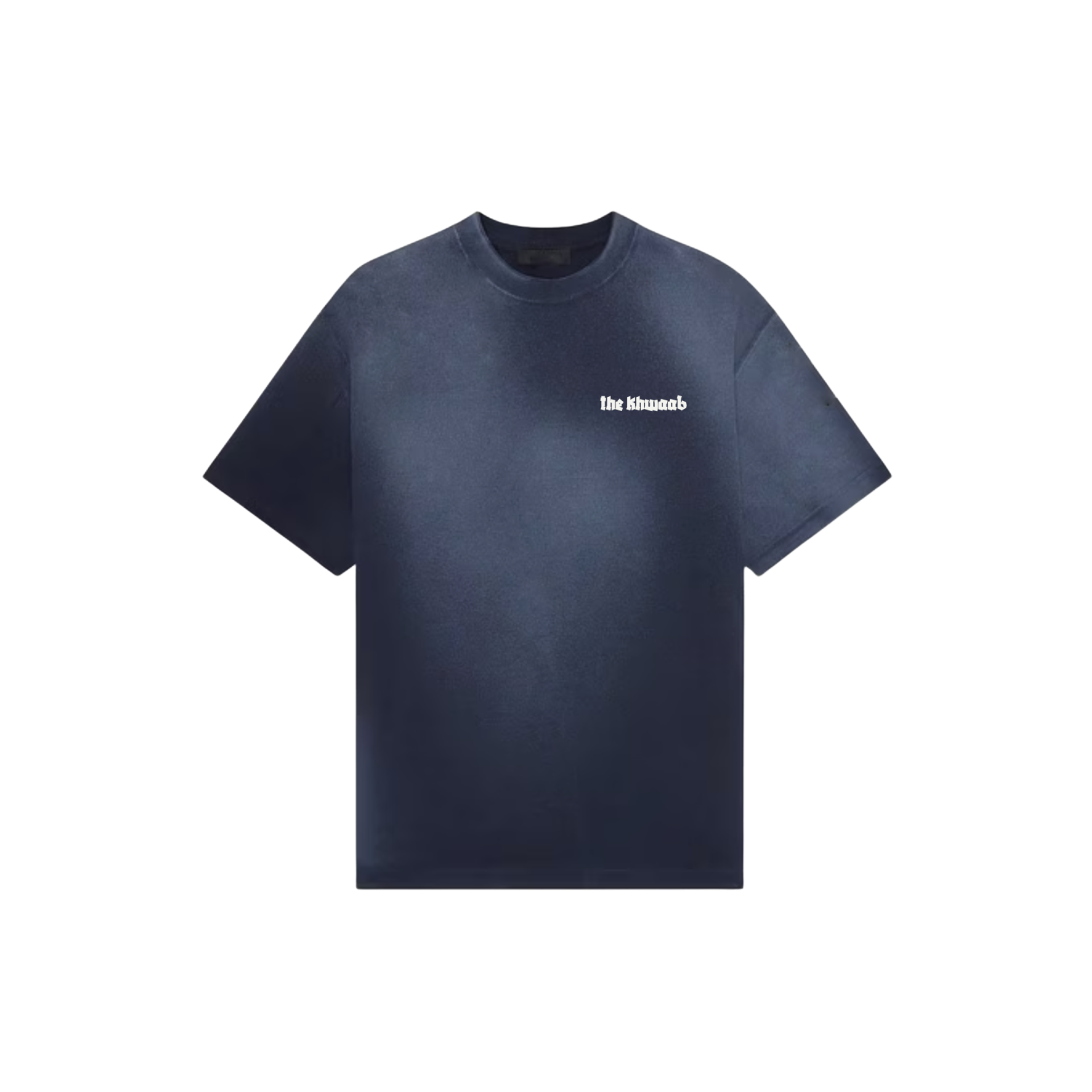 Script Spray Paint Tee in navy blue is crafted from luxury medium weight cotton, with a relaxed fit. It features abstract spray wash effect on the front and back.
