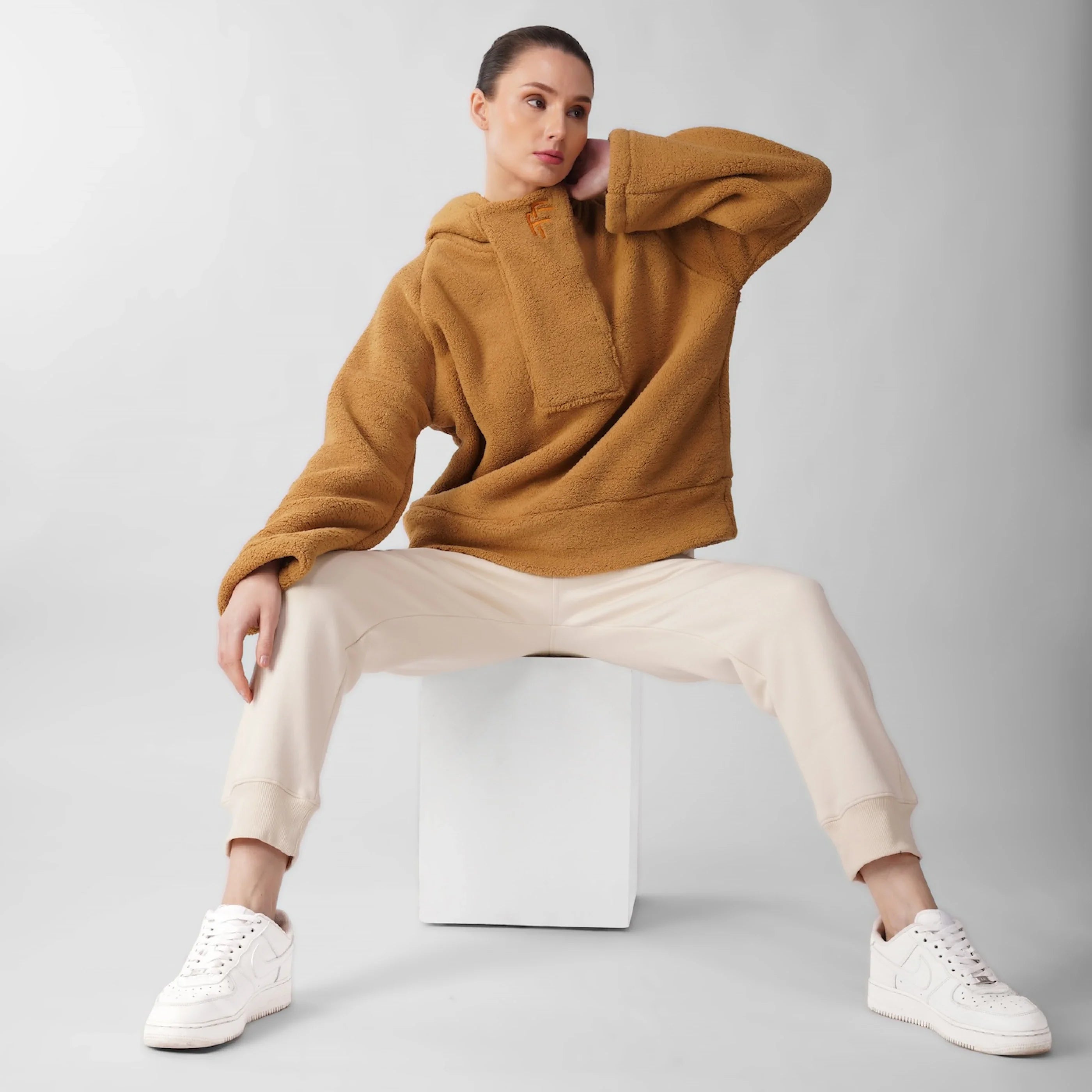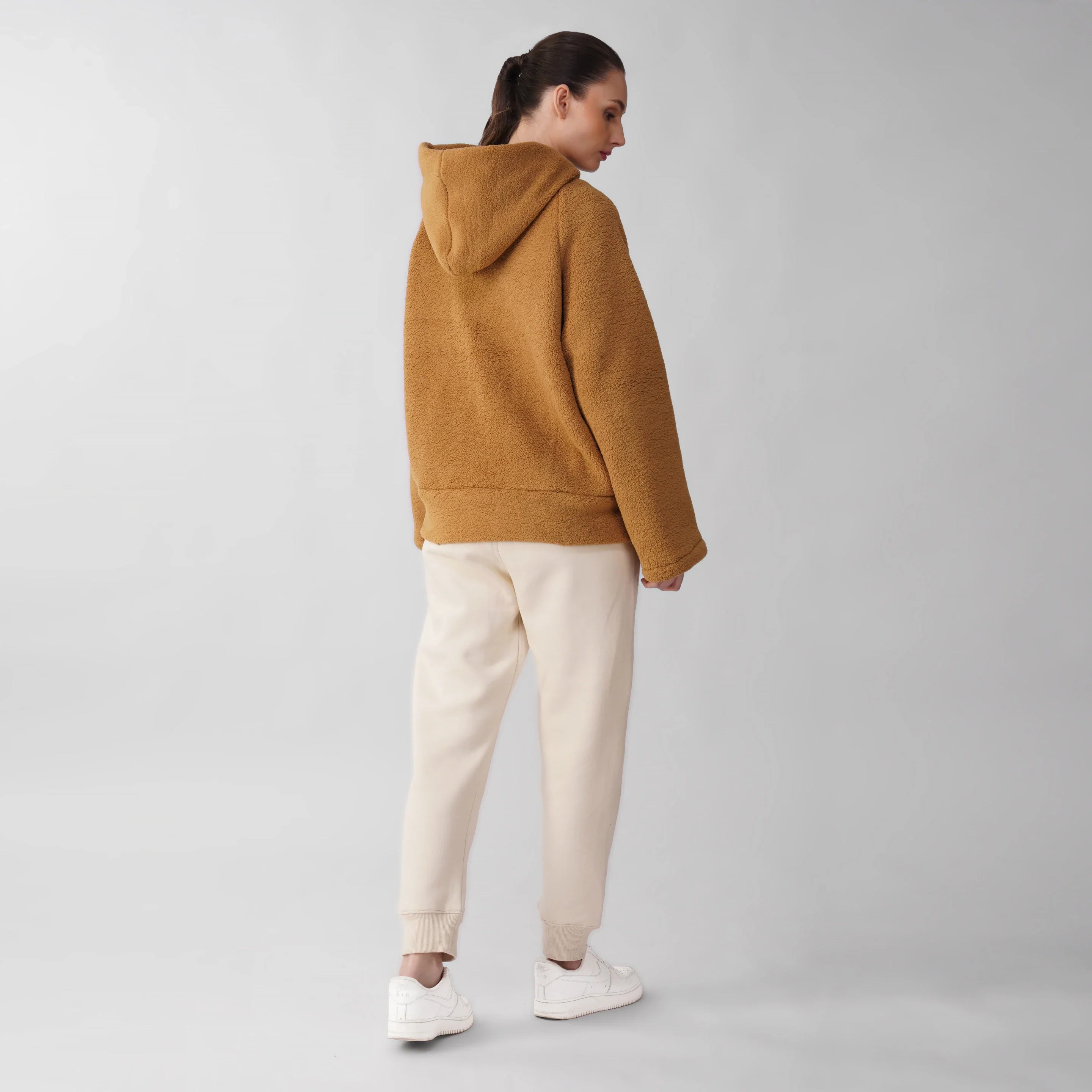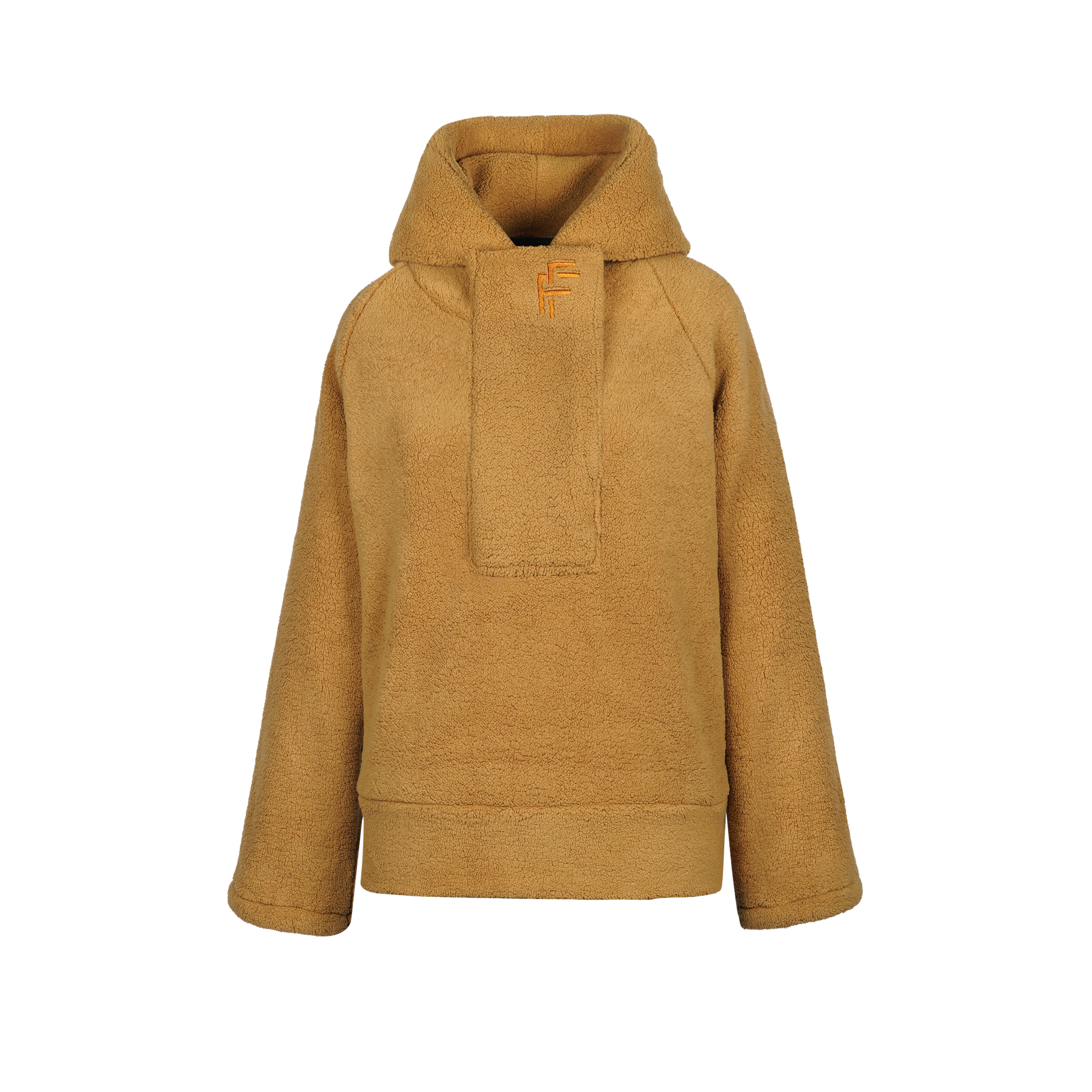 This heavy blouson silhouette in sherpa is a statement piece of Fierce London’s latest collection. It features an embroidered Stacked Shield monogram in bronze on the front panel that adds to a powerful look. This hooded blouson has sherpa lining on the inside as well.