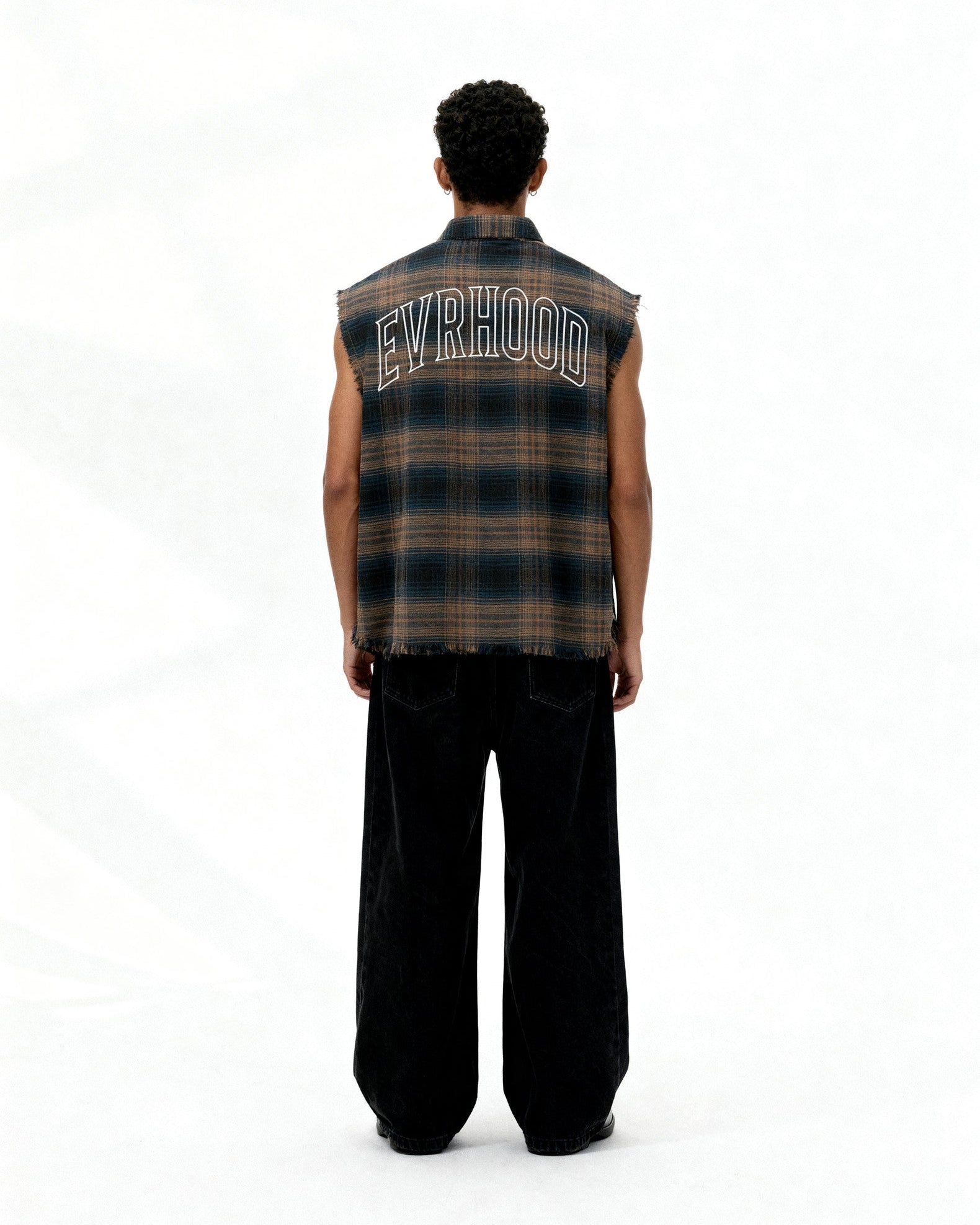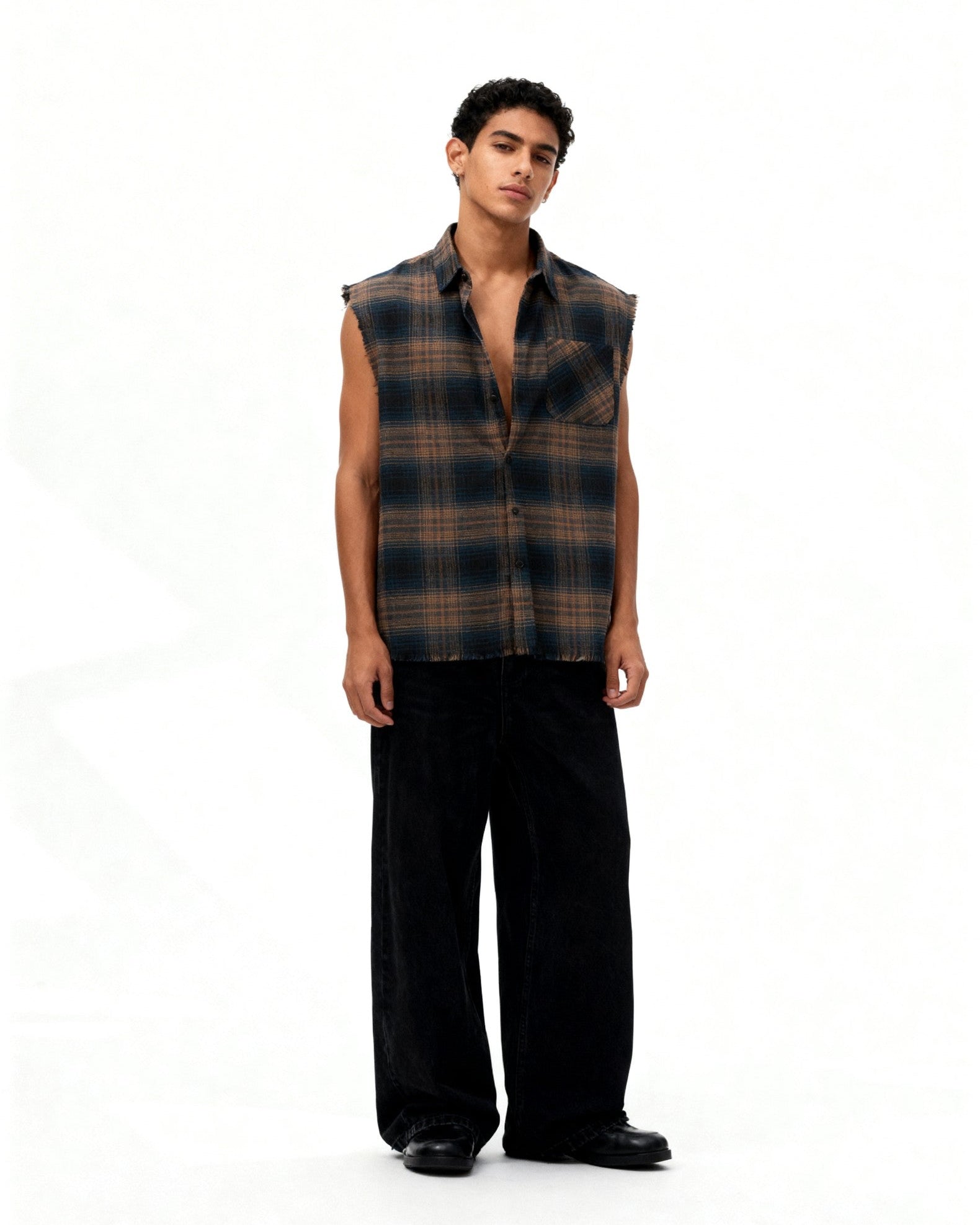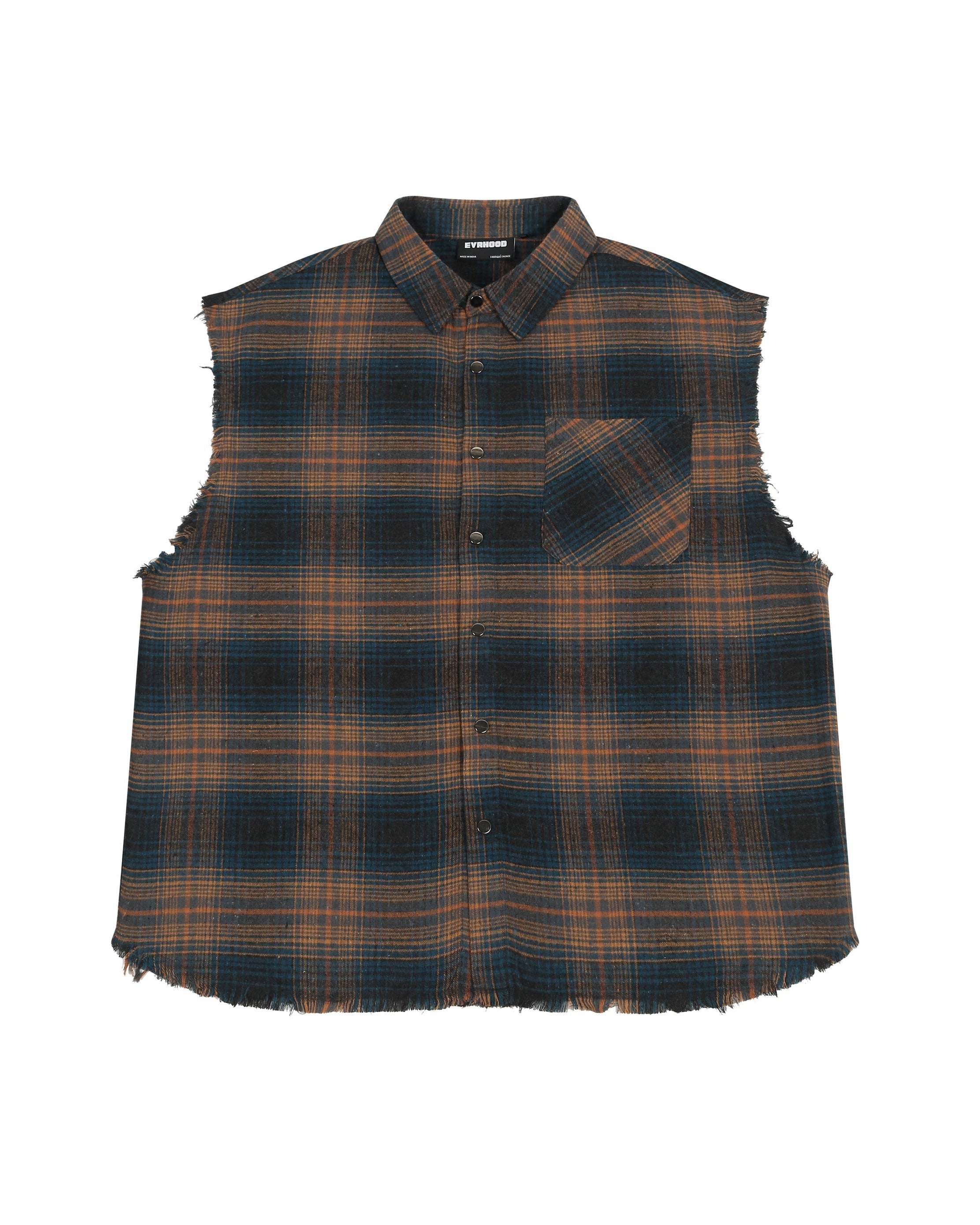 Distressed, sleeveless, and cut from soft cotton-brushed flannel — this piece blends rugged street style with everyday wearability. The raw edges and worn-in look give it a lived-in, ready-for-anything vibe.