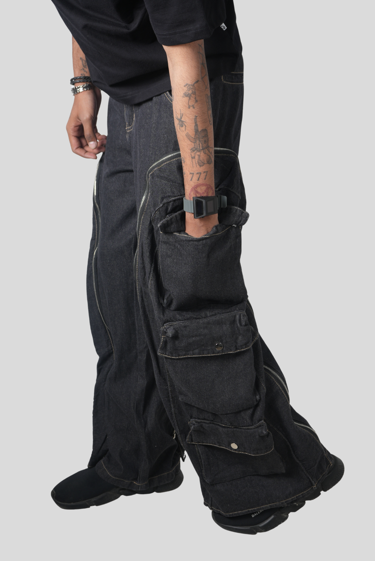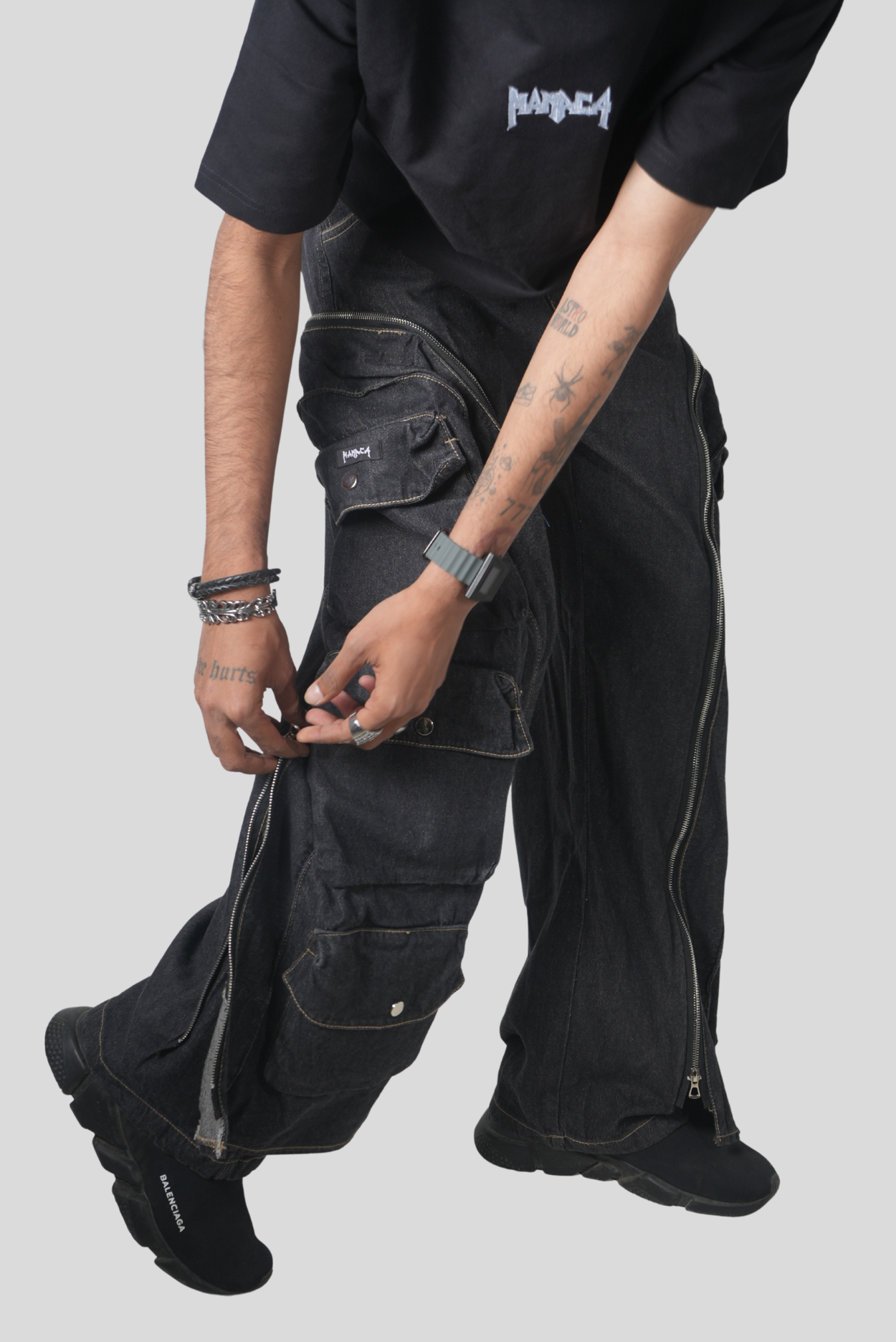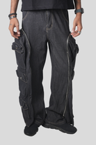 Description: The SIDE SAW Cargo Pants are a versatile fusion of functionality and style. Featuring a detachable side component, these pants allow for a customizable silhouette. When the chain is attached, they present a robust, edgy look; removing it transforms them into a sleek, minimalist design. This adaptability makes them suitable for various occasions, from casual outings to more refined settings. Pair them with a fitted tee and boots for a rugged appearance, or opt for a crisp shirt and sneakers for a streamlined ensemble.