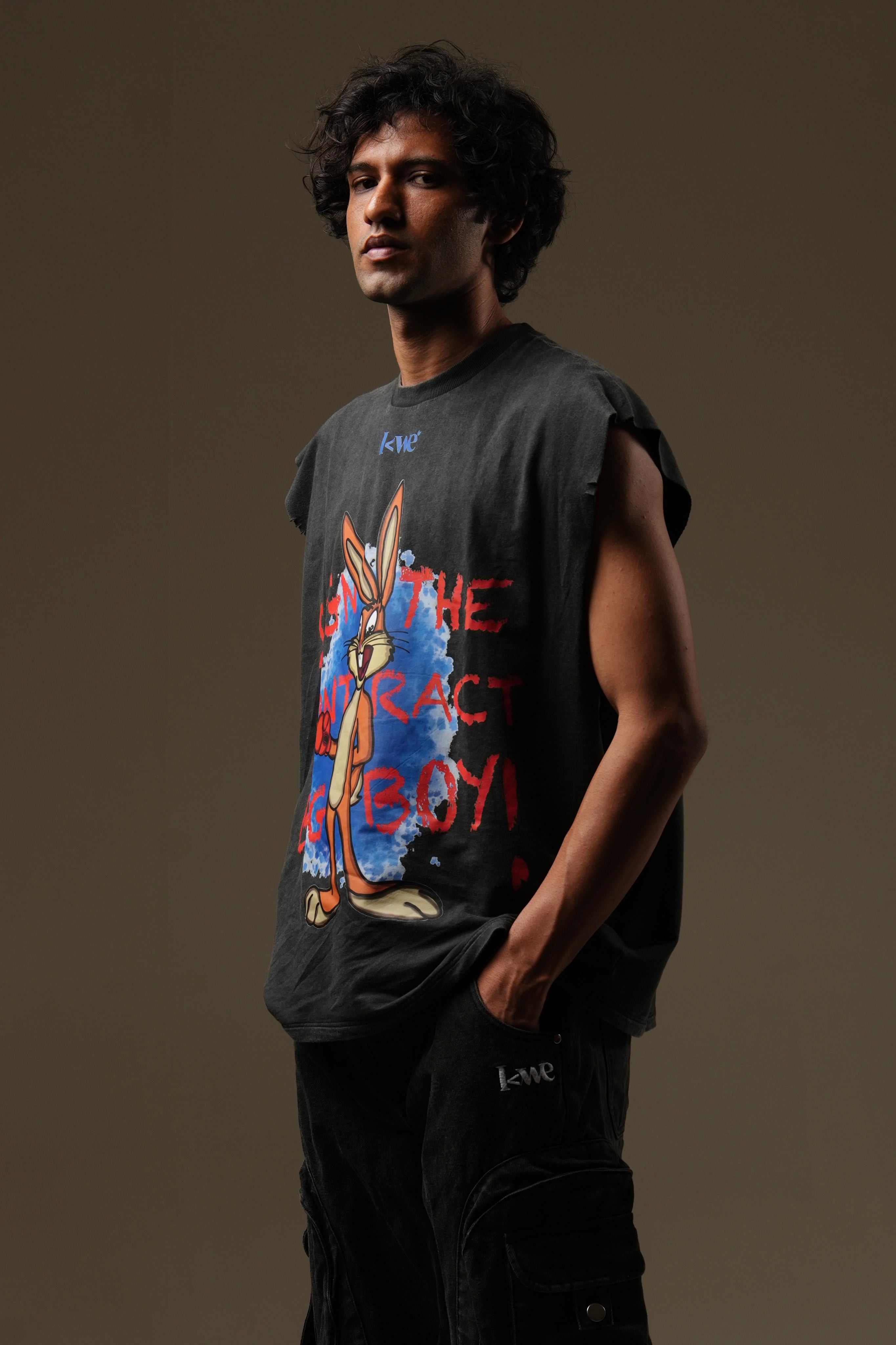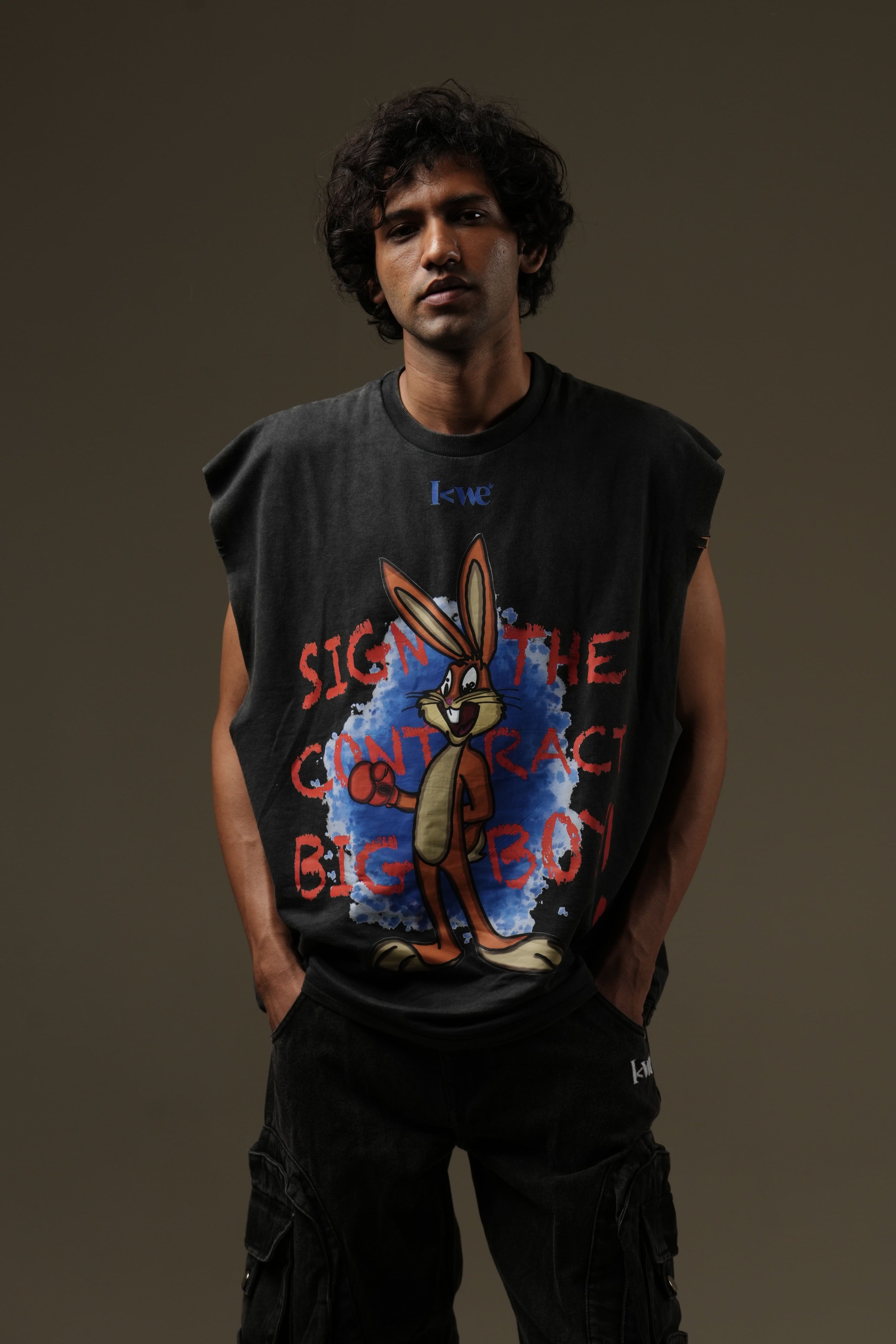 "Sign the Contract, Big Boy" Acid Washed Tank, featuring an adorable bunny in boxing gloves. Inspired by the iconic quote from Mike Tyson, this tank delivers a lighthearted twist on determination and confidence.