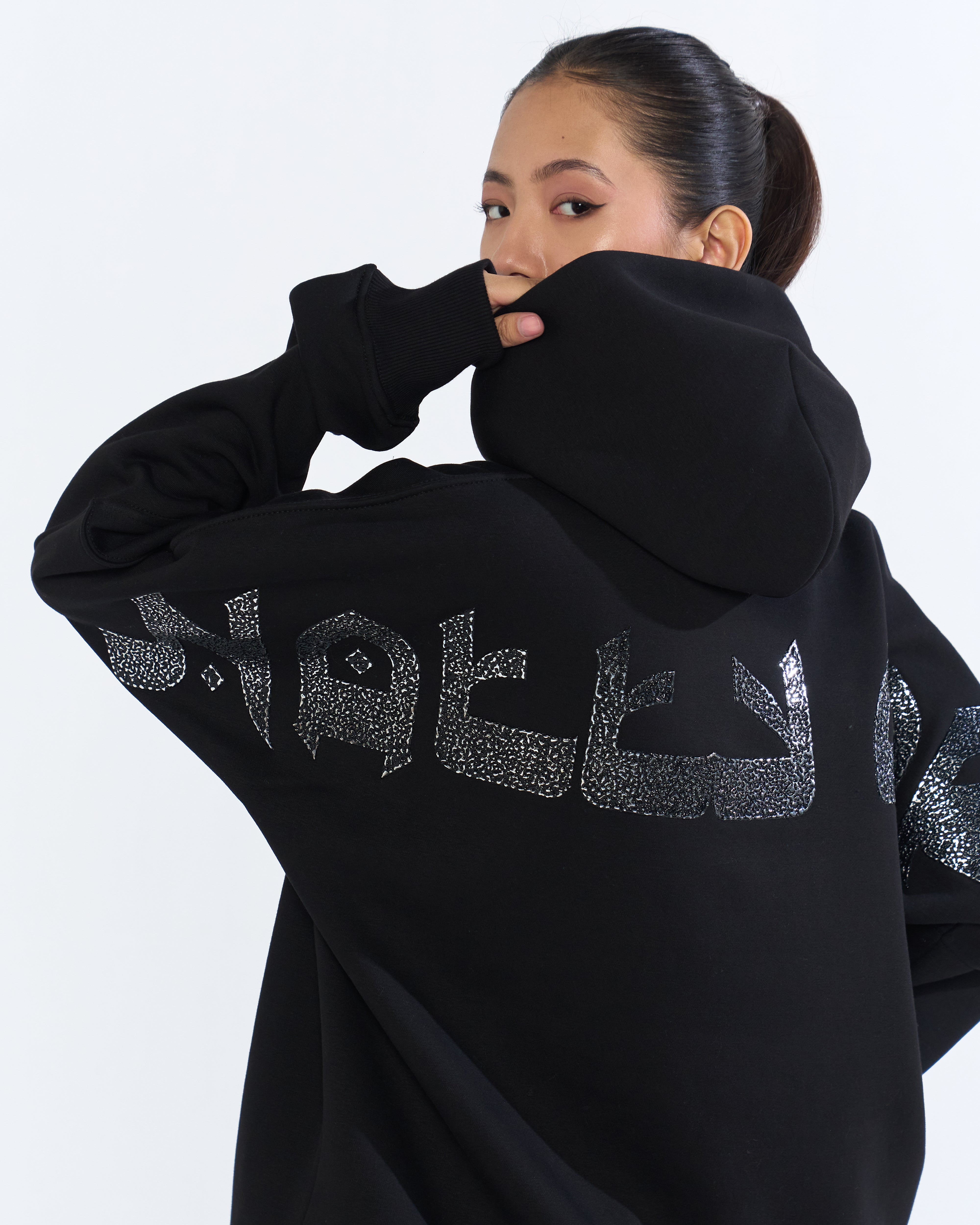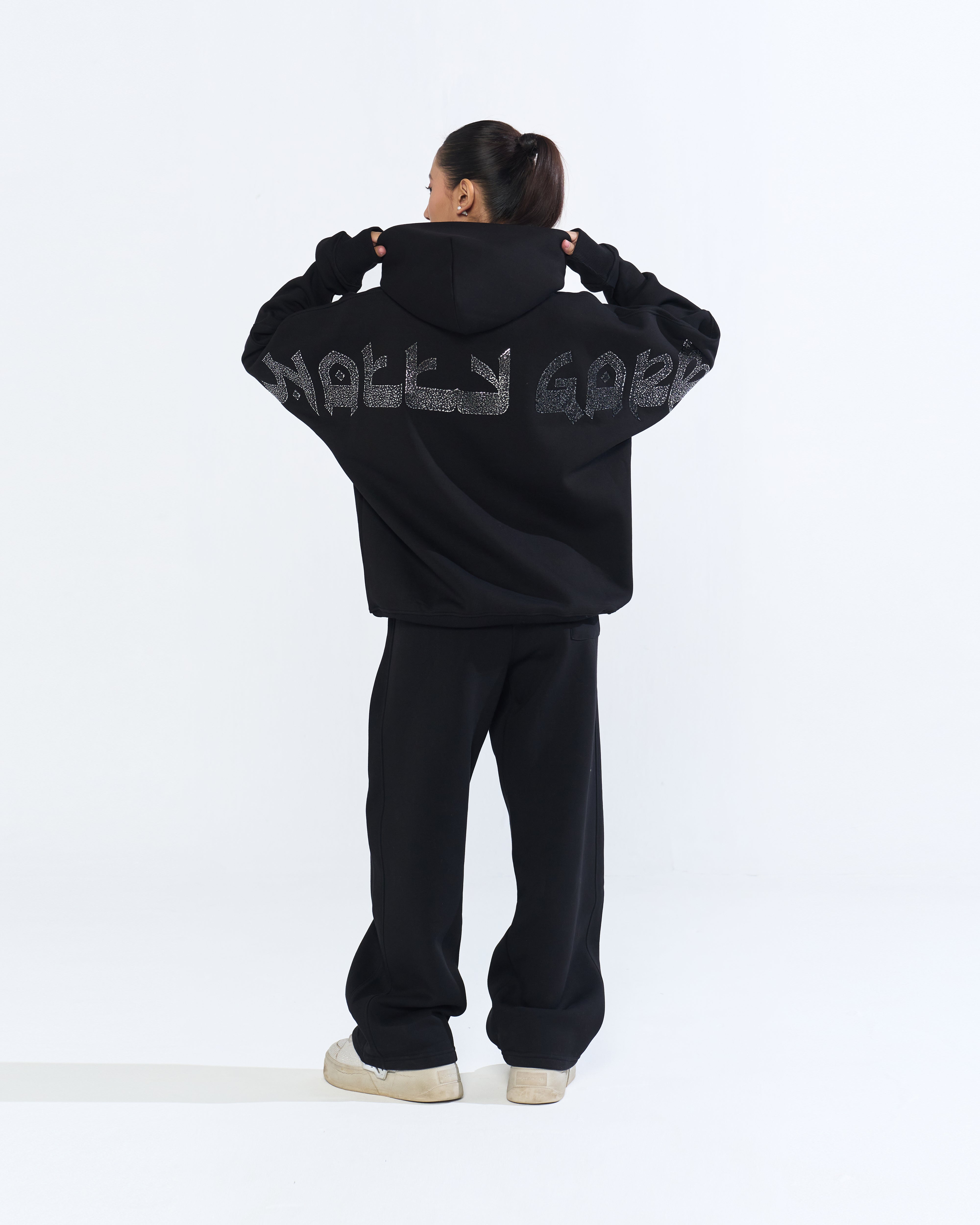 - BLACK Caviar Seed WITH SILVER FOIL Natty Garb Signature branding on the back of the hoodie.