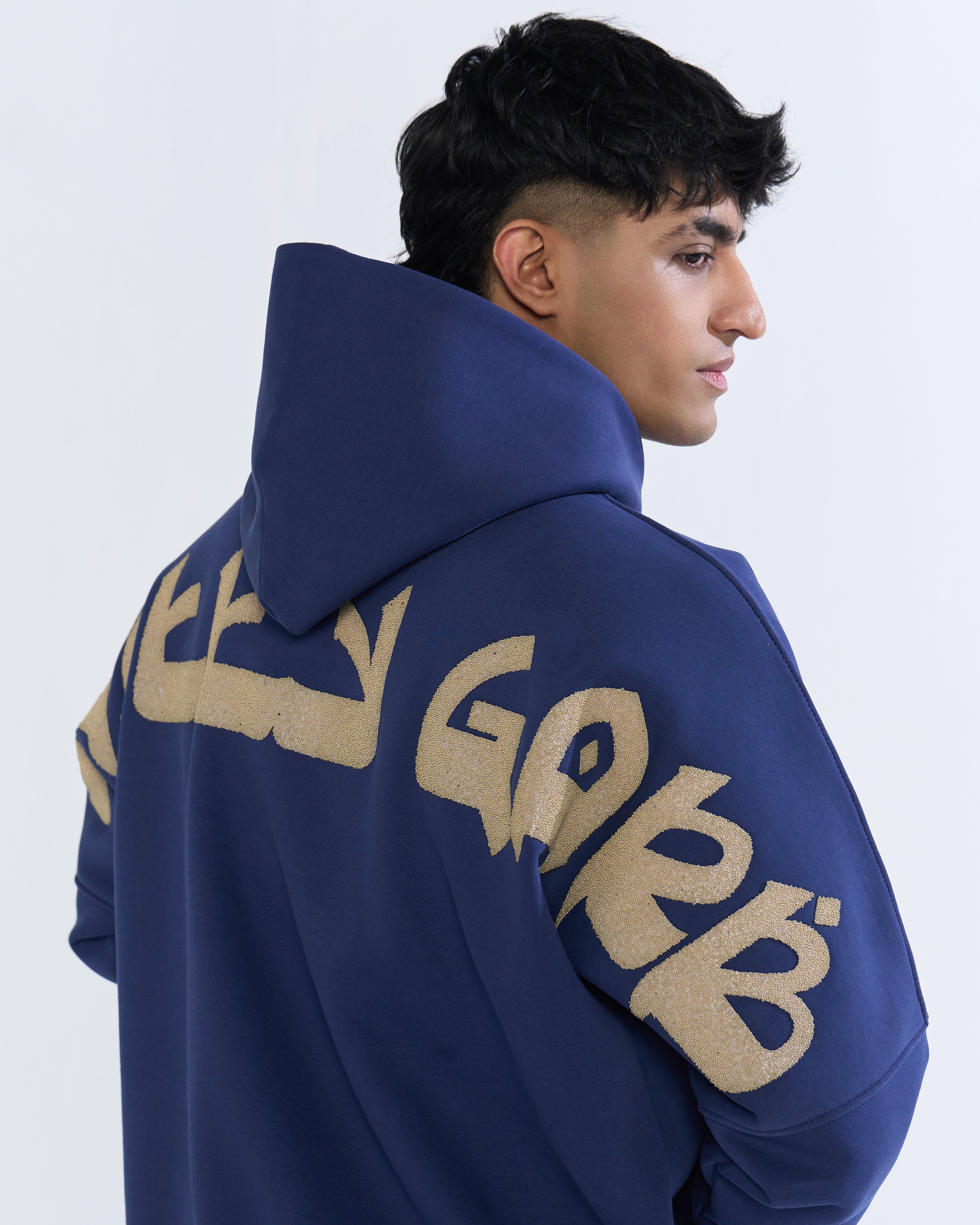 - BEIGE Caviar Seed Natty Garb Signature branding on the back of the hoodie.
