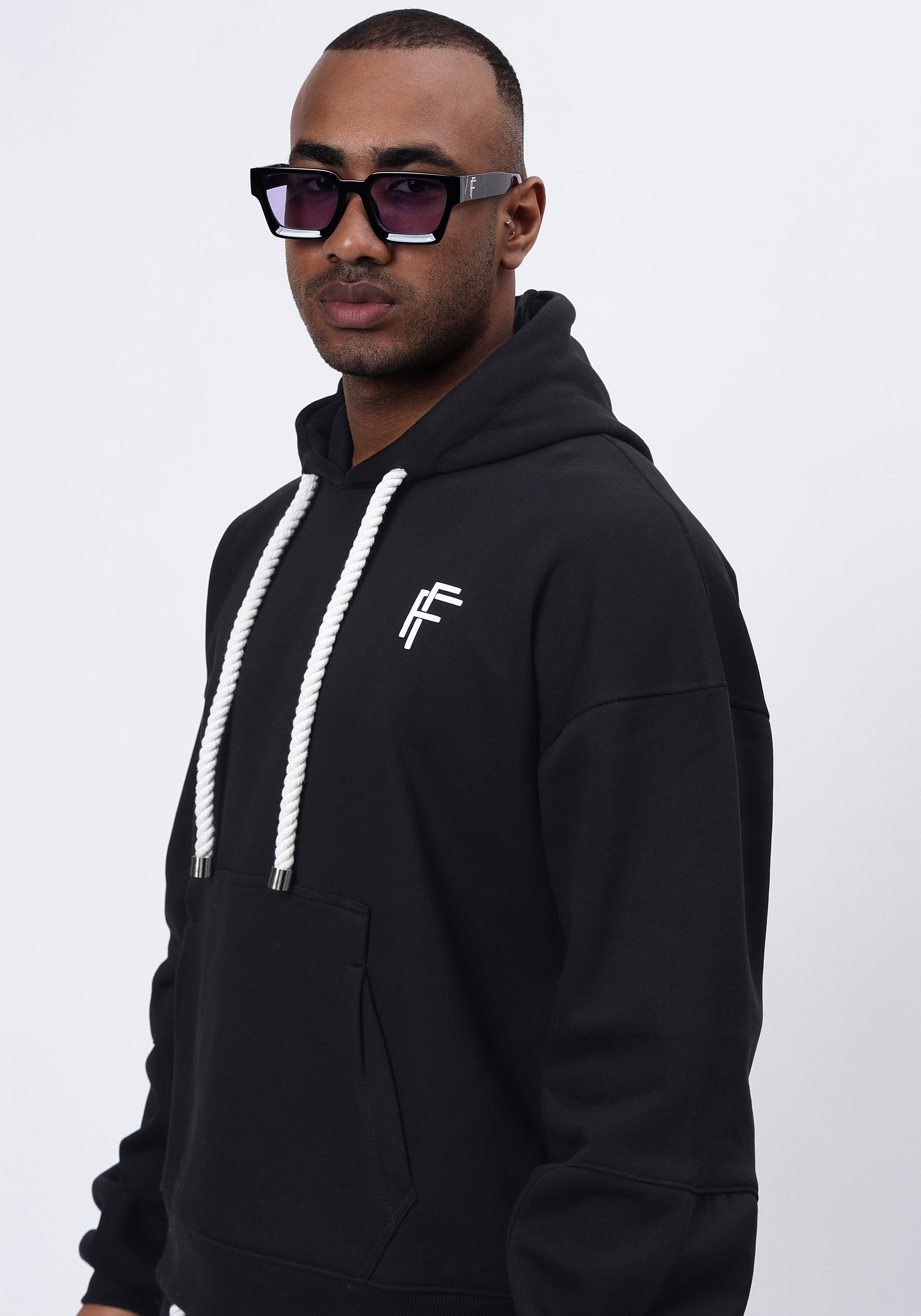 This signature hoodie features the iconic regent’s cord with metallic detailing in gunmetal grey. It is crafted from heavyweight fabric with luxurious fleece on the inside. It features the Stacked shield monogram in 3D along with special stitch detailing on the elbows. The pockets feature a special pleat.