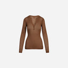 SKIMS Sheer Knit Long Sleeve Henley Bison