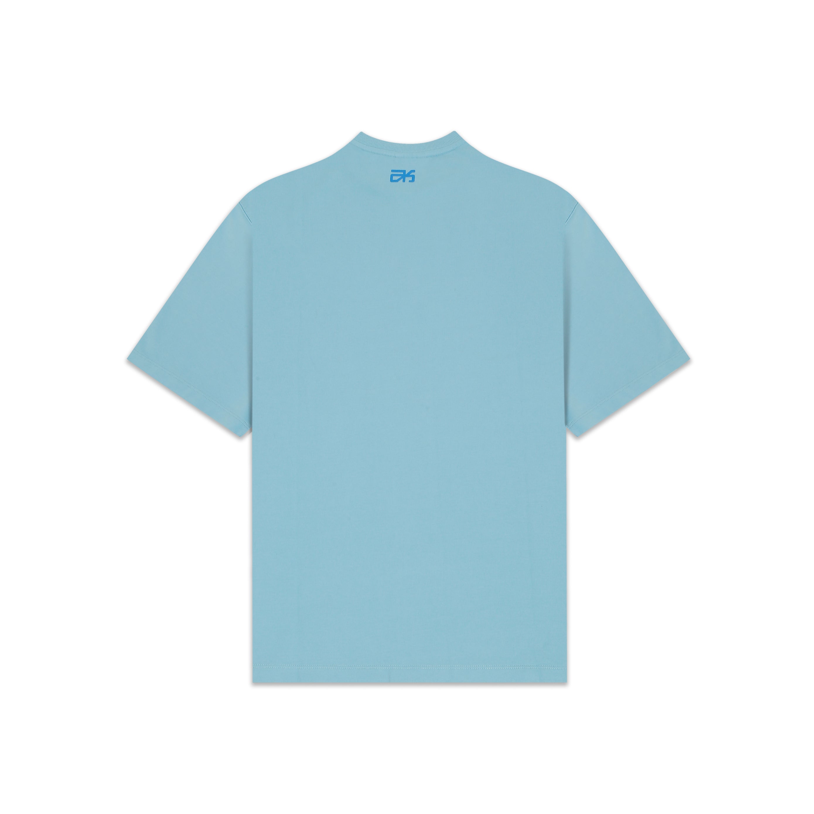Logo Placement : Just below the chest, slightly left of center in blue, balanced and understated.