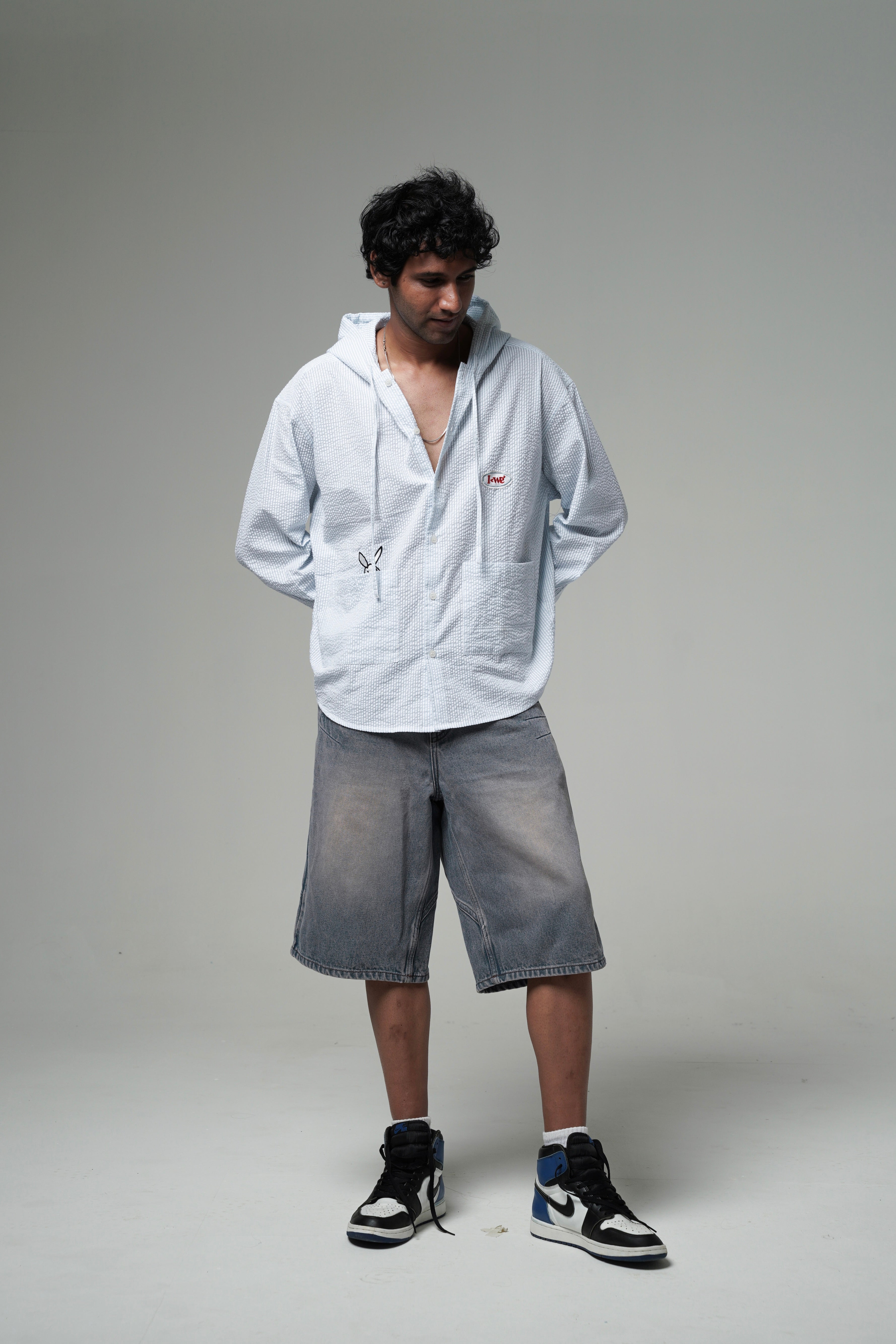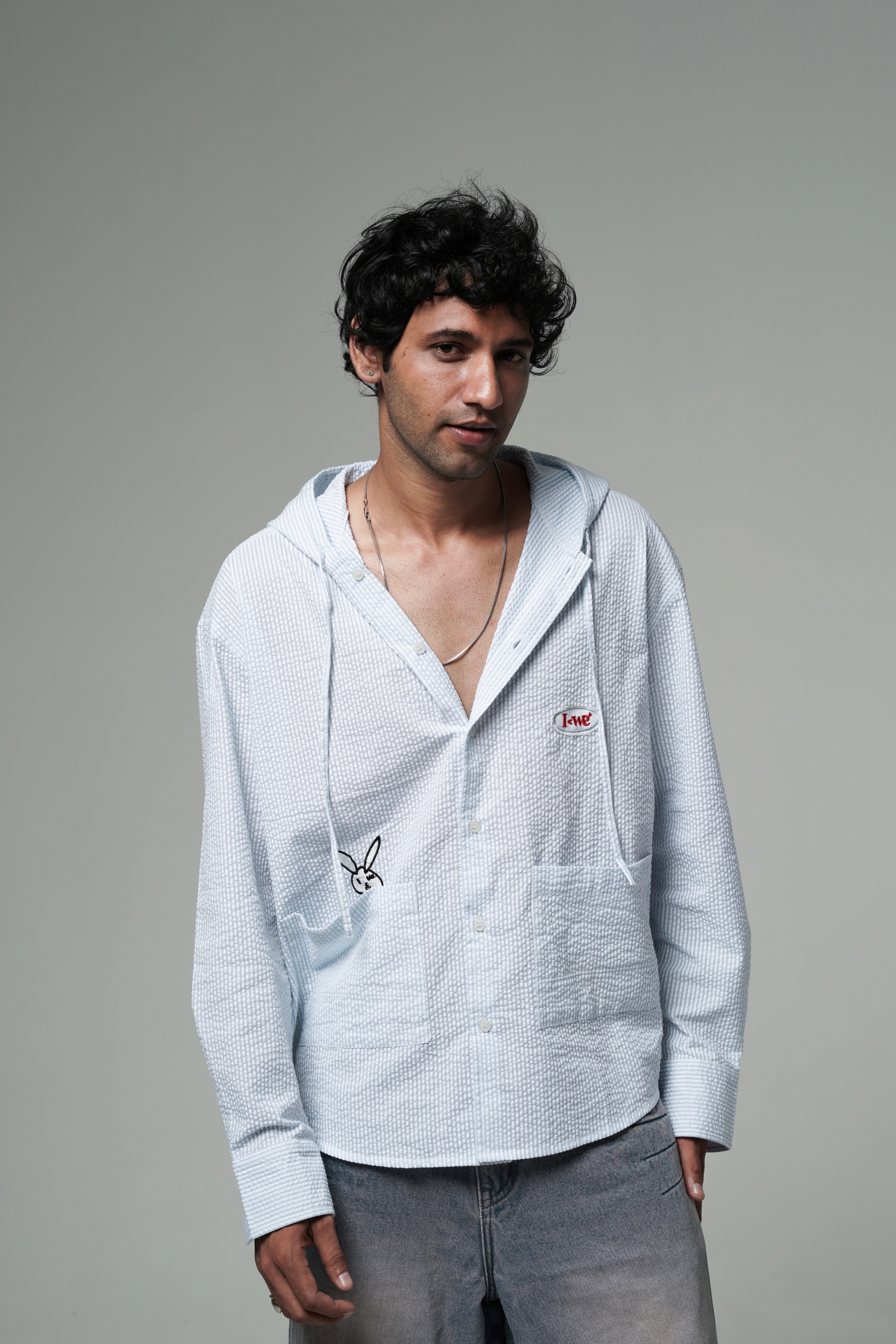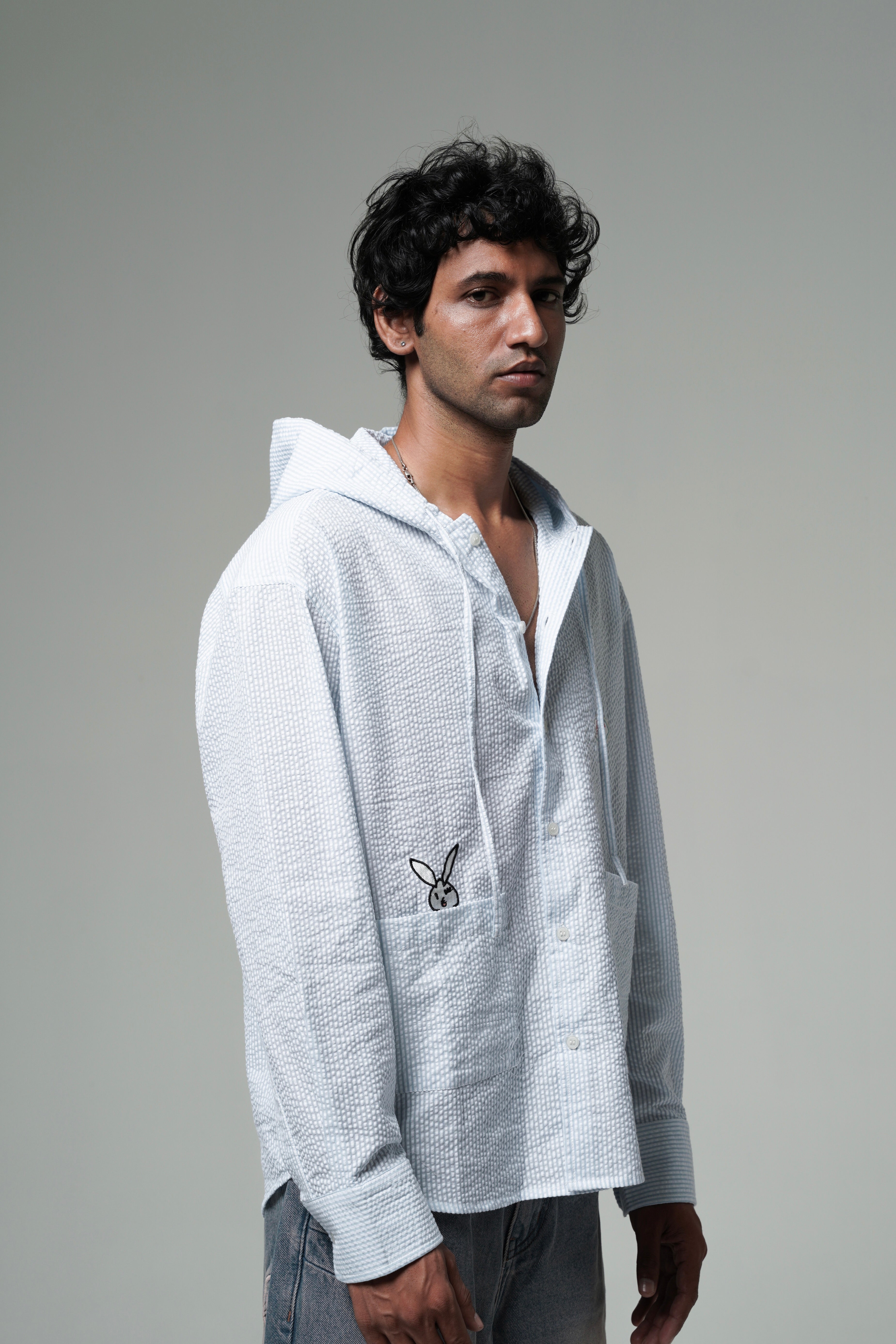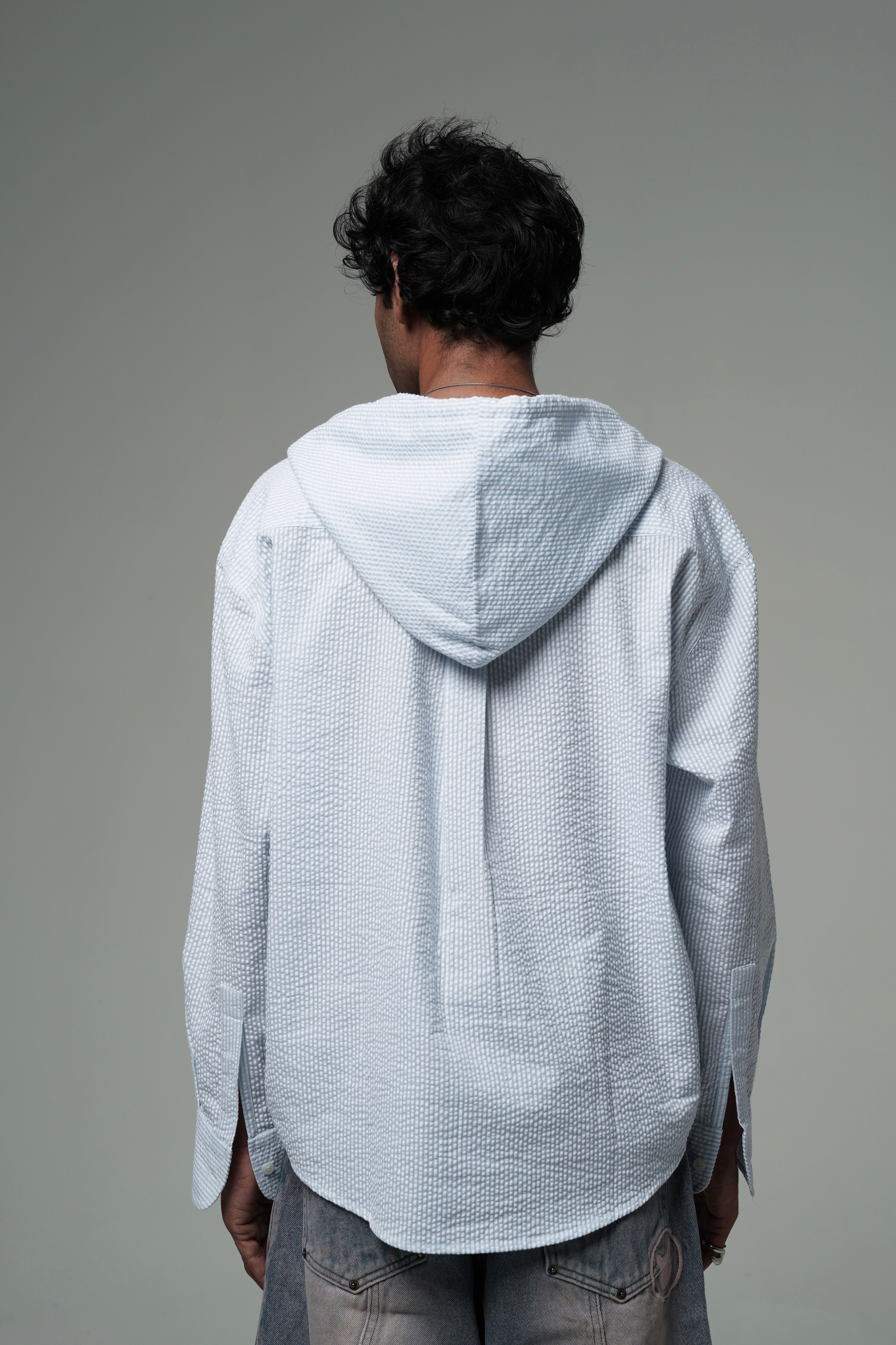 Turn heads without trying. The Sky Hooded Shirt combines the comfort of a hoodie with the sharp look of a shirt. Made in breathable textured cotton and cut in an oversized fit, it’s built for everyday wear with a twist. The unique double-hood detail makes it a piece you won’t find anywhere else.