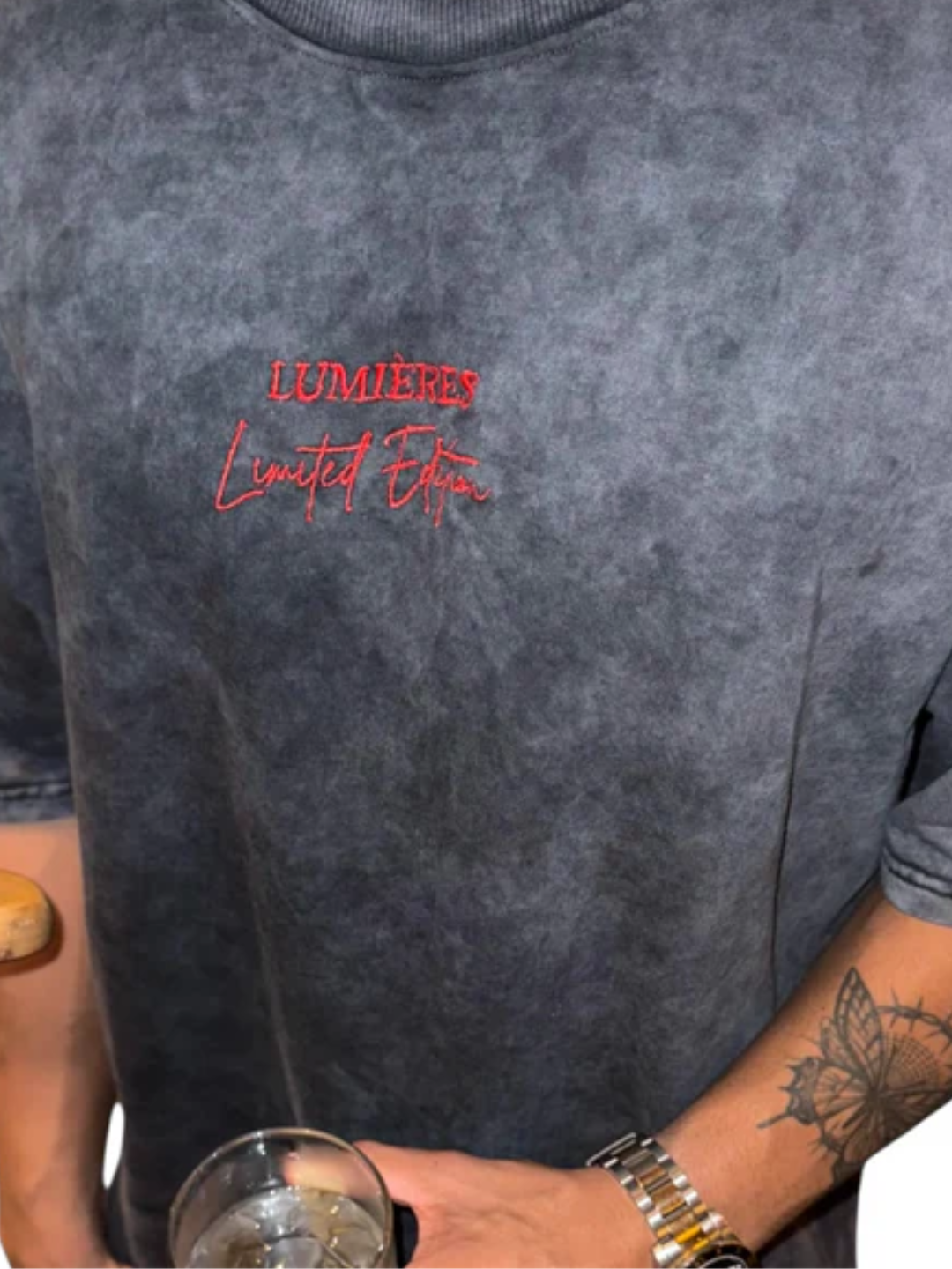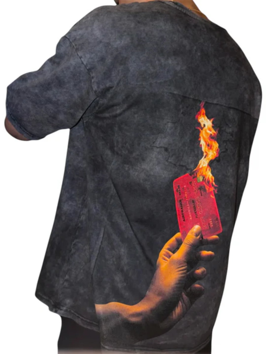 Limited Edition Snobiety Tee in 2 washed colorways made with a premium fabric blend featuring Original graphic at the Back with a burning Amex card in hand depicting splurging. Red Embroidered logo at the Front. Dropped shoulders, long sleeves and wide ribbing at the cuffs and hem.