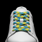 Sour Diesel Flat Laces feature a vibrant yellow, green, and light blue plaid pattern, designed to stand out on both light and dark sneakers.