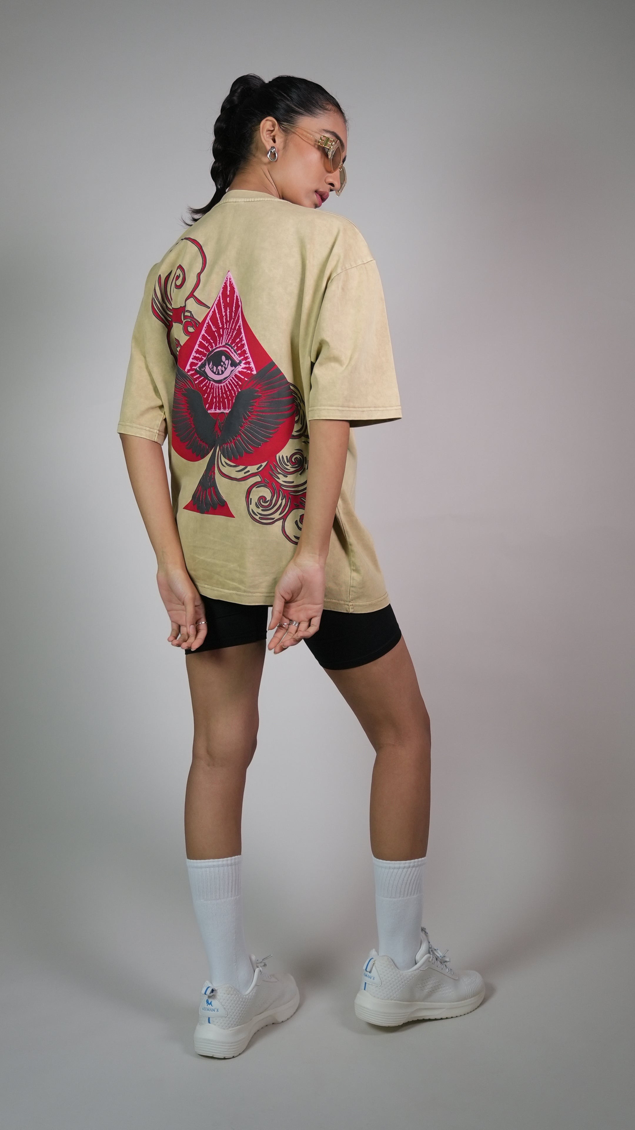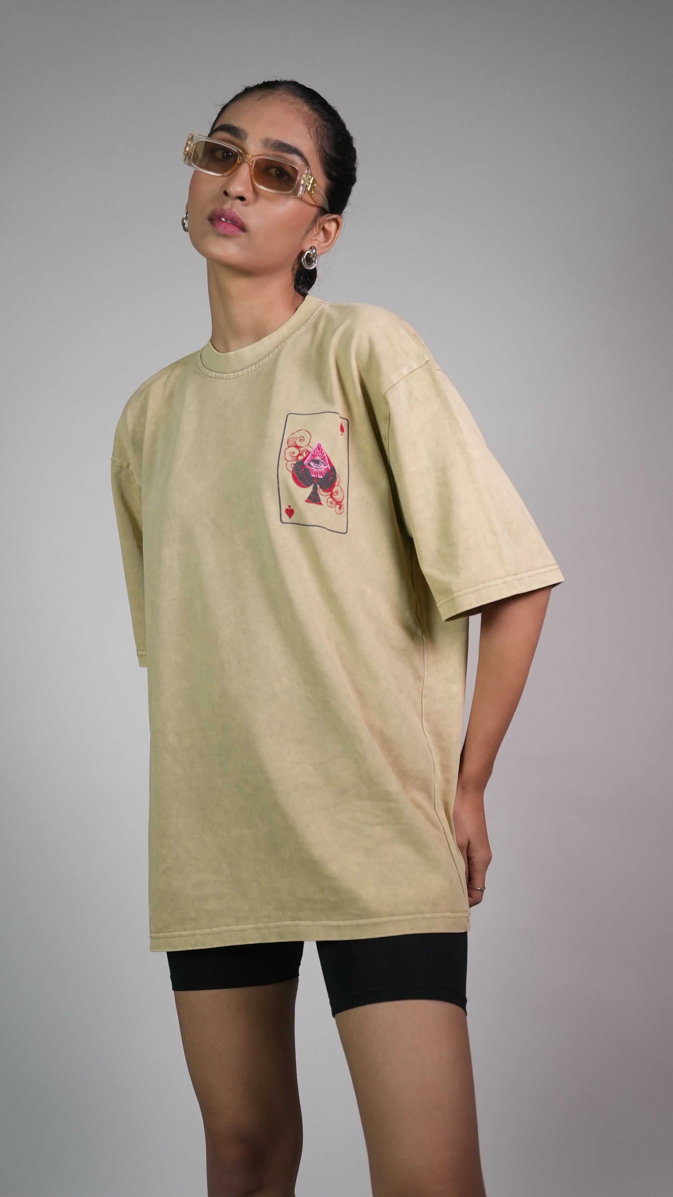 SPADE OF SECRETS BEIGE ACIDWASH WOMEN’S OVERSIZED T-SHIRT