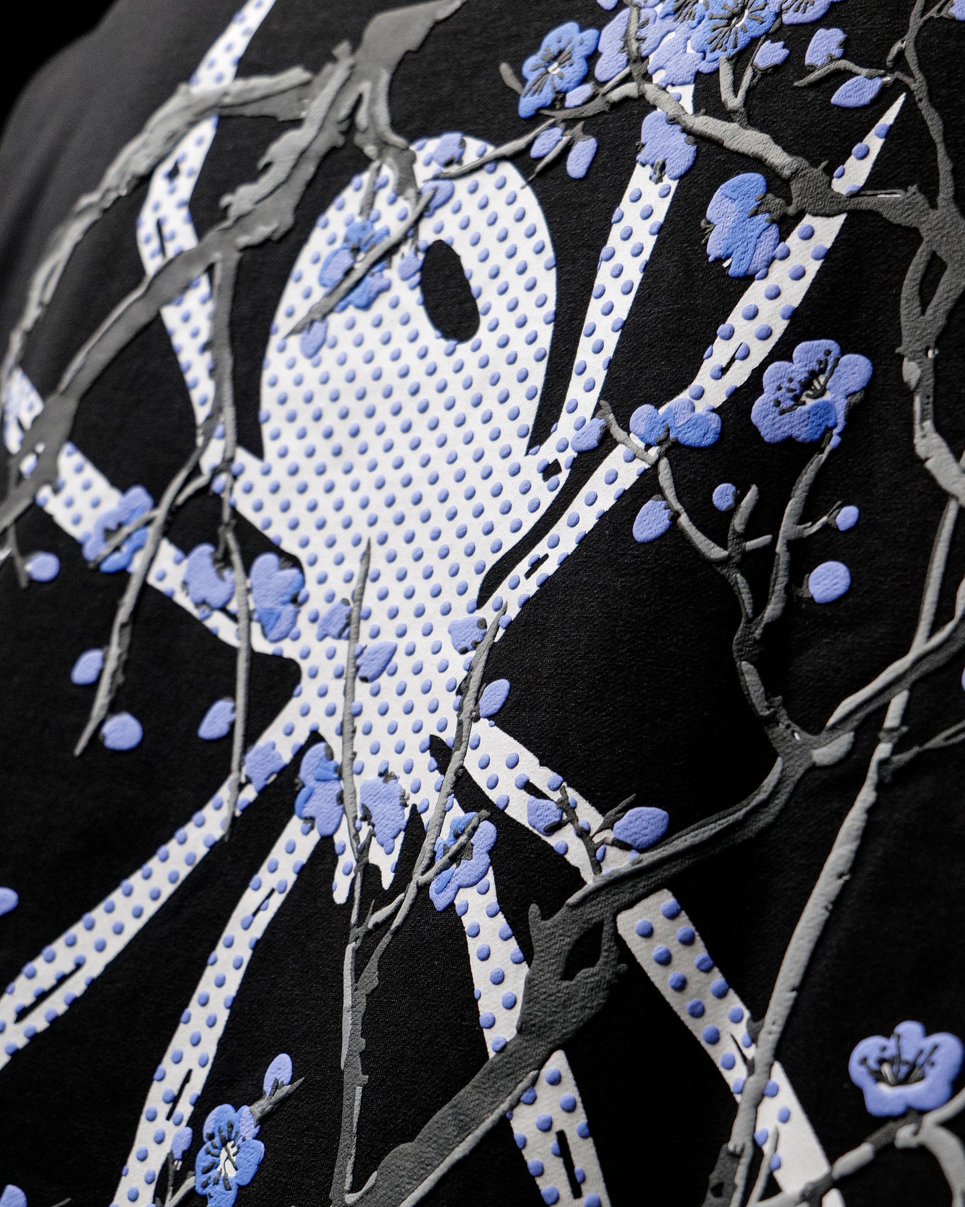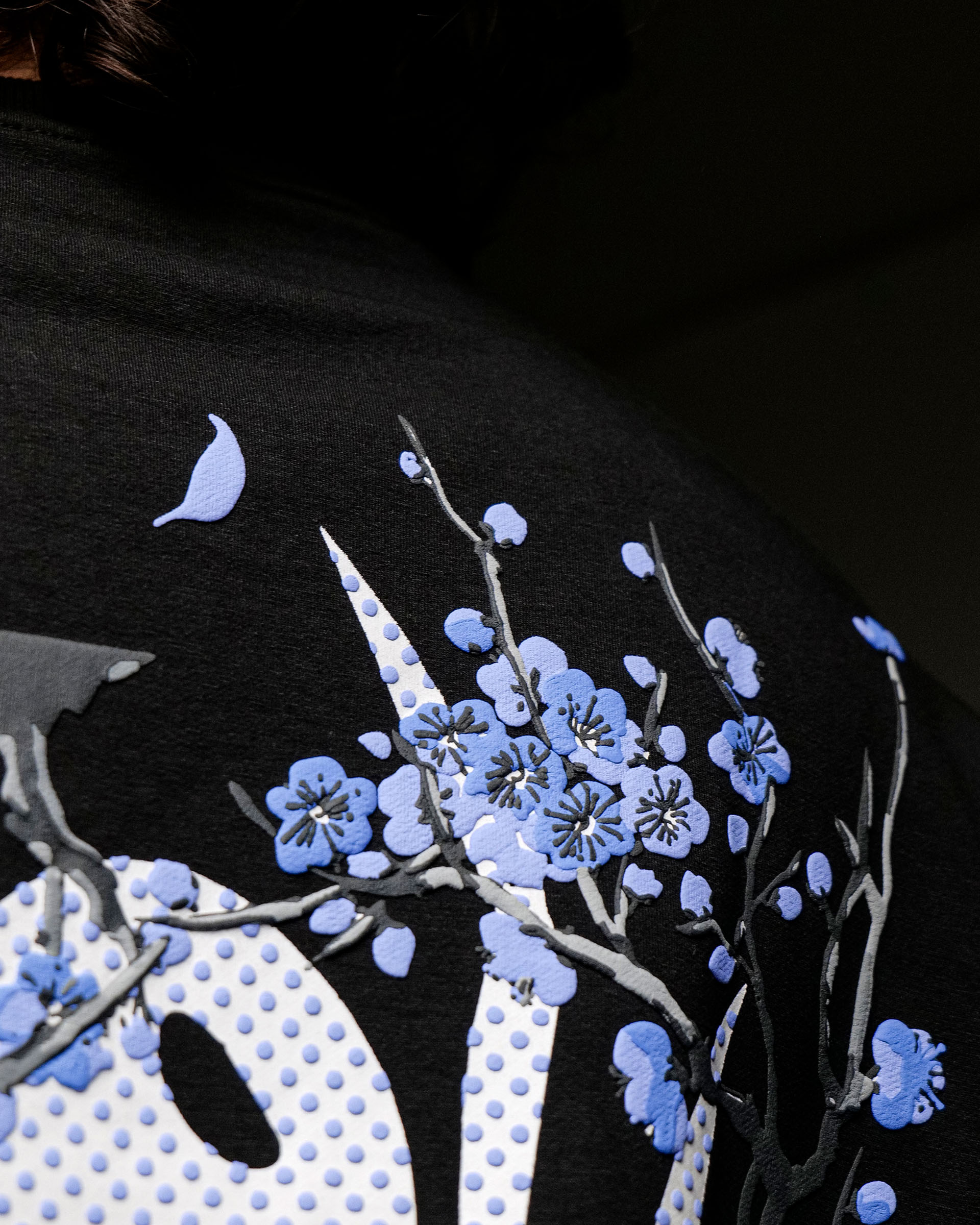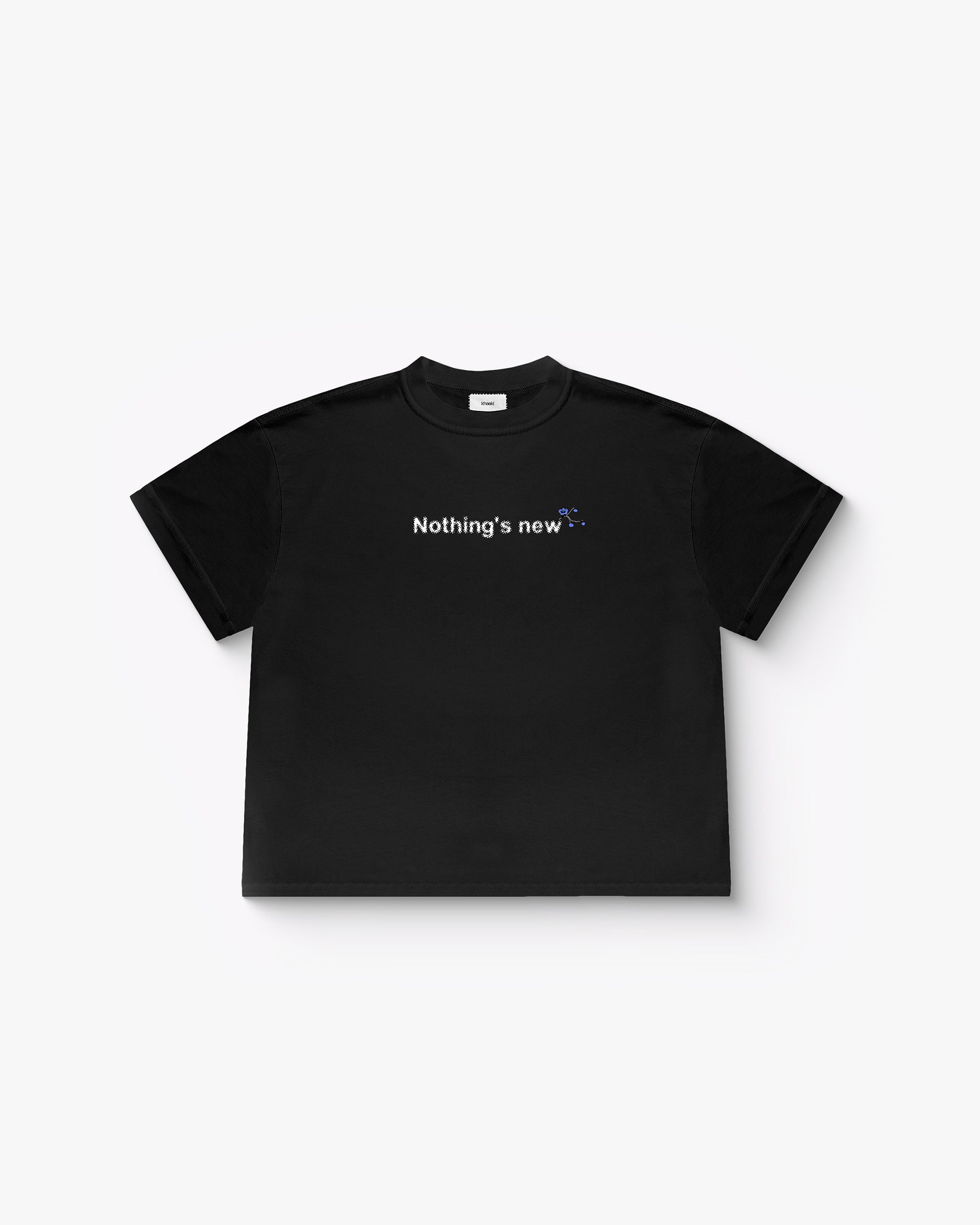 The Nothing’s New Spider Bloom Tee redefines dark elegance with a surreal fusion of grunge and florals. This black oversized unisex t-shirt features a minimalist front that reads “Nothing’s new” with a subtle floral accent, while the back steals the show with an intricate puff-printed spider entangled in blooming blue branches.