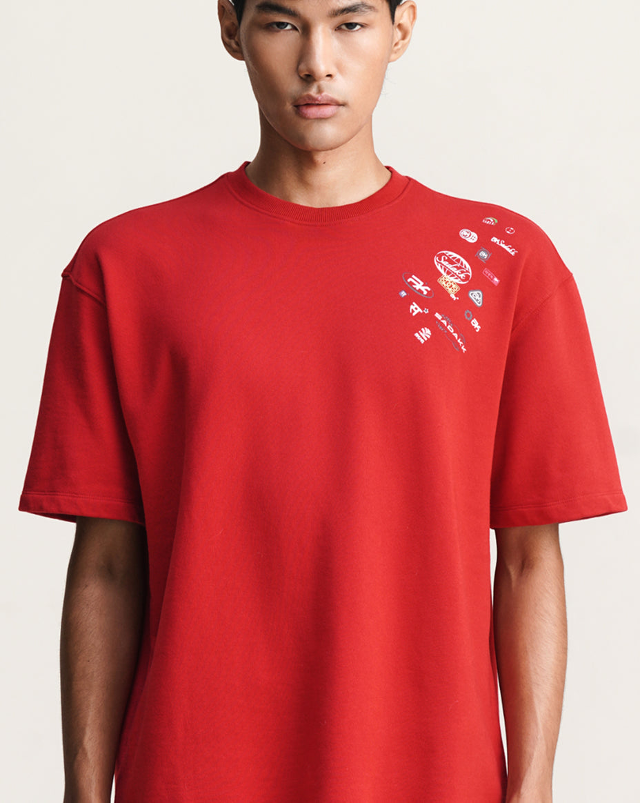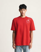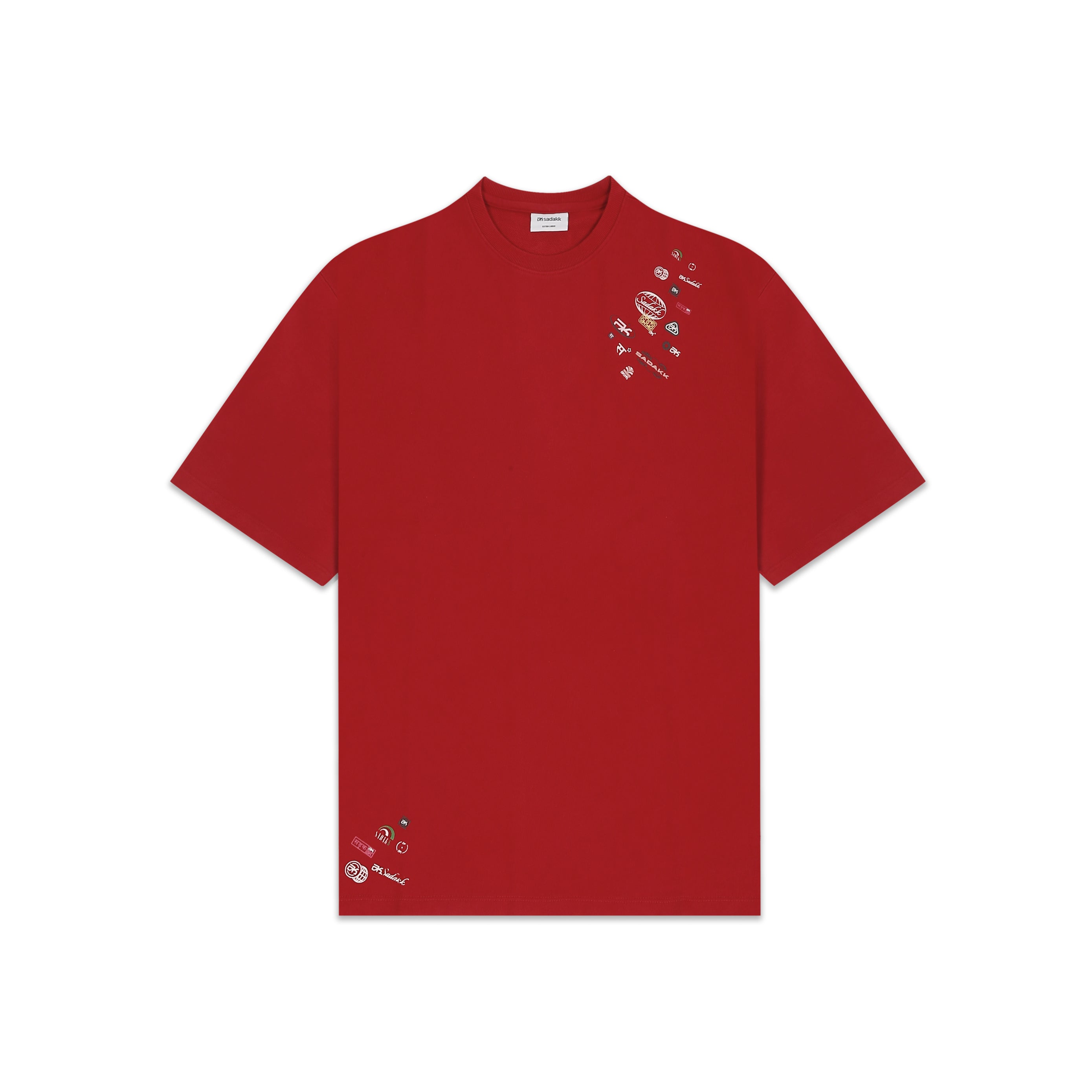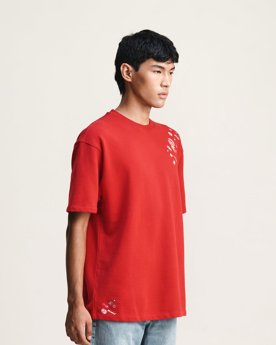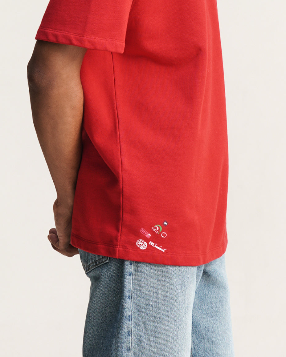Equestrian red oversized tee with signature Sadakk micro logos