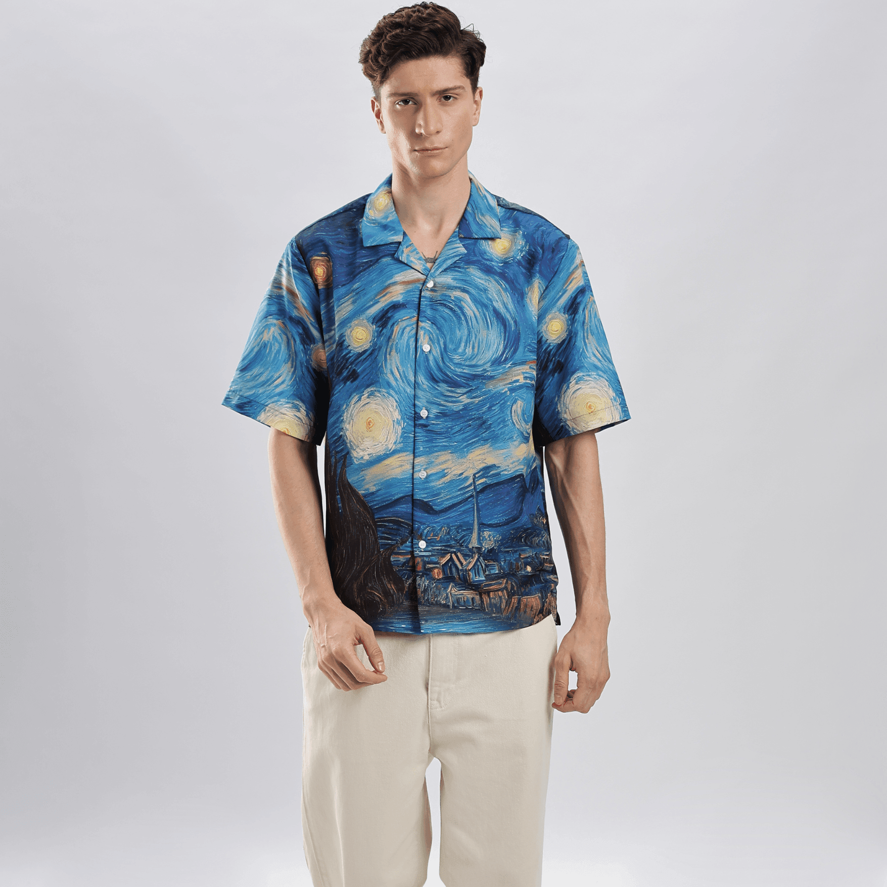 Transform your wardrobe with the IMHERE Exclusive "Starry Nights Resort Collar" Shirt. Experience the perfect mix of style, comfort, and elegance with this celestial-inspired piece.