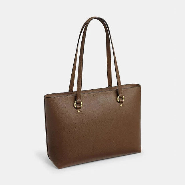 Crafted from premium crossgrain leather, the Coach Station Tote Bag in Gold-Dark Stone offers a sophisticated blend of durability and style. Its thoughtfully designed spacious interior accommodates daily essentials with ease, while the sleek silhouette adds a refined touch to professional or casual ensembles. This tote is a versatile accessory that elevates your look while providing practical functionality.