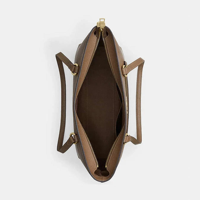 Coach Station Tote Bag Crossgrain Leather-Gold-Dark Stone