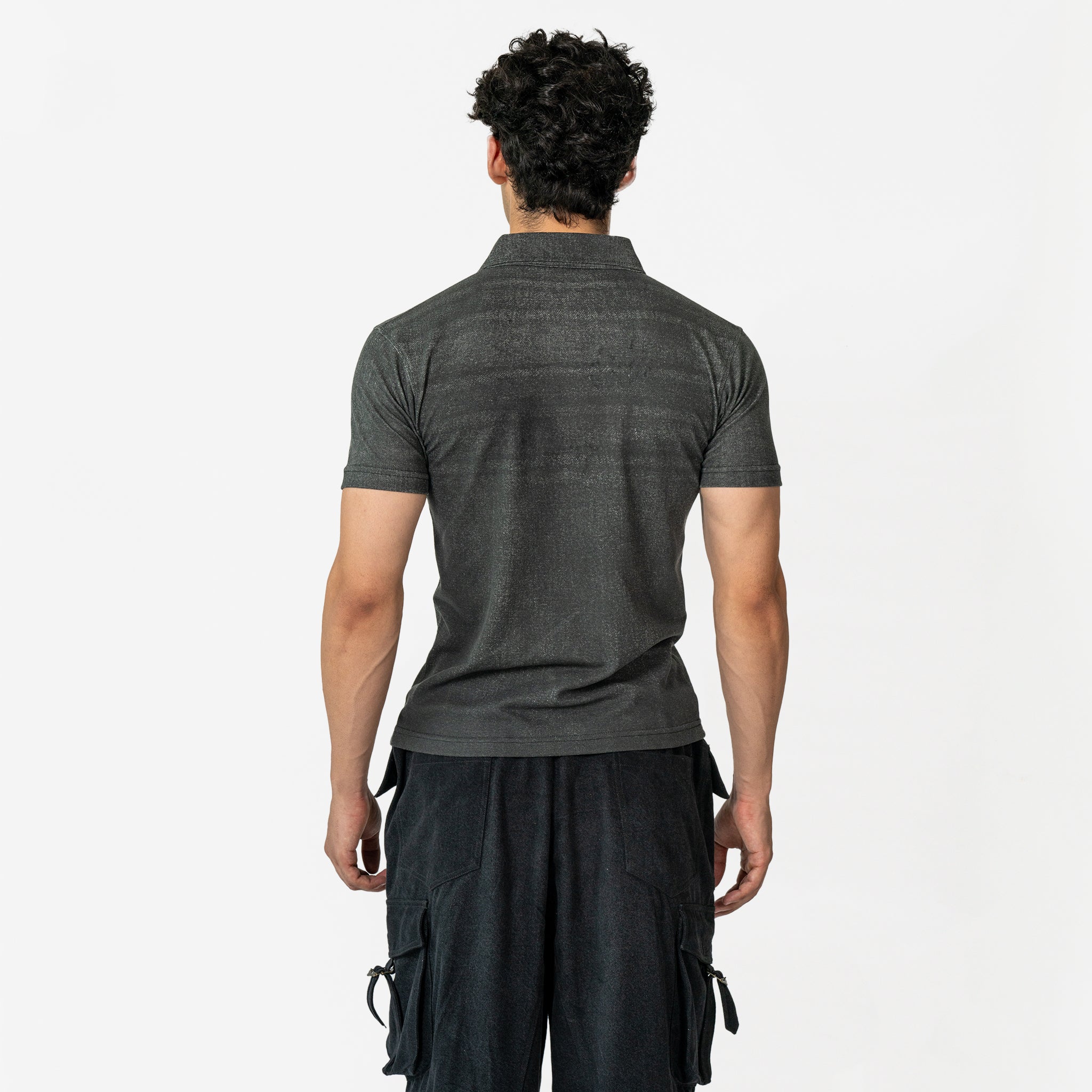 A cool, muted that sits between silver and stone. Its tone carries a quiet clarity, neither too flat nor too raw, offering a neutral base with presence. The polo lends the surface a soft hand and barely there texture, creating movement that feels both structured and organic. Subtle, weightless,and quietly elevated.