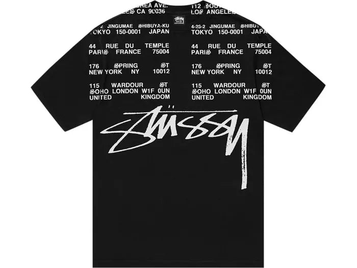 Elevate your urban style with the Stussy Locations Tee Pigment Dyed in 'Black' – where timeless sophistication meets contemporary edge.