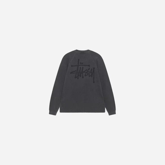 STUSSY RAGLAN THERMAL LS CREW WASHED BLACK